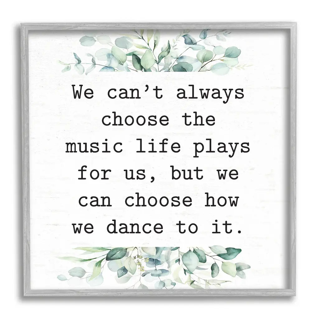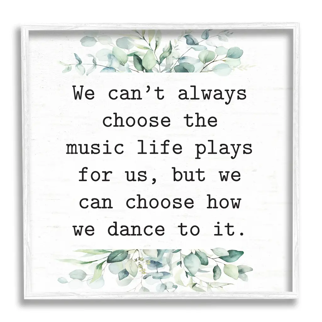 Stupell Inspirational Music Life Quote Mixed Botanicals Arrangement Framed Wall Art, Design By Lettered And Lined - White - 24 X 24 - Black