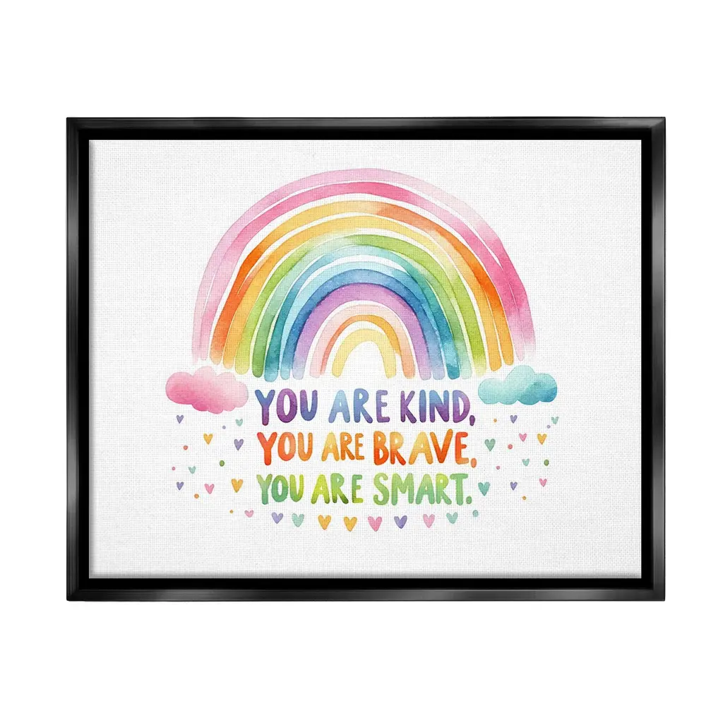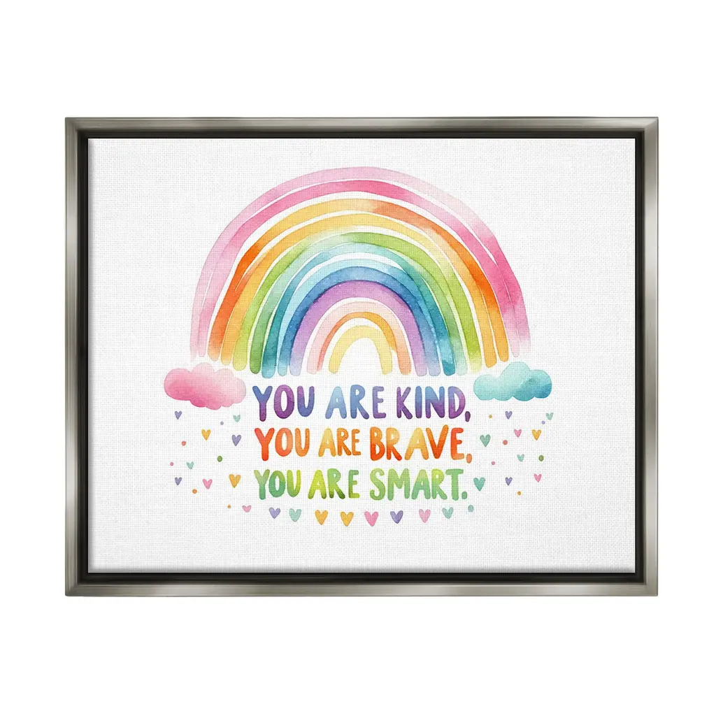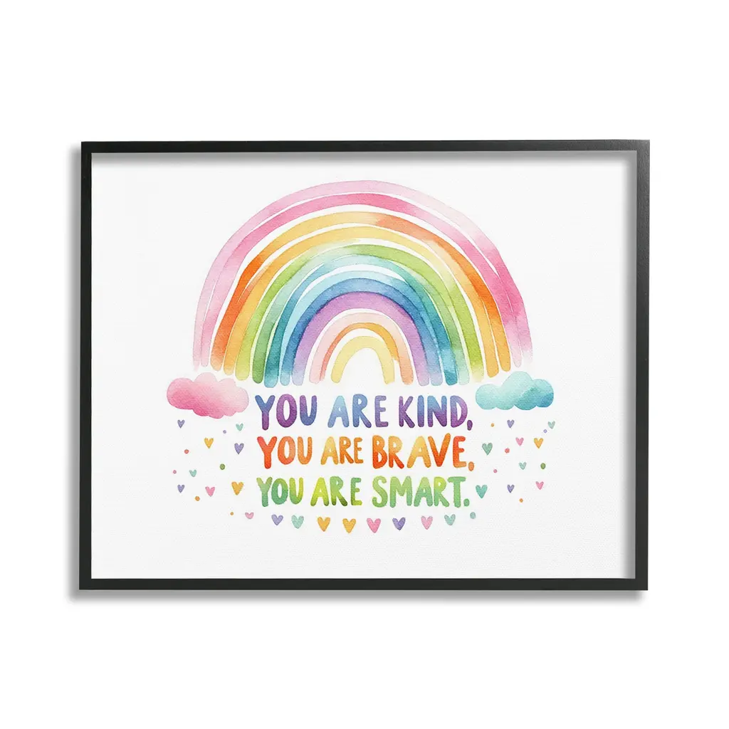 Our wall plaques start as high-quality lithograph prints mounted on durable 0.5-inch thick MDF wood. Each piece is hand finished and comes with a fresh layer of white foil on the sides to give it a crisp, clean look. Plaques arrive ready to hang without installation and come with removable plastic corners to keep them from damage in transit. Wall Art is made in the USA.Features: Dimensions: 10 x 0.5 x 15 InchesWall Plaque Sizes Include Standard: 10 x 0.5 x 15 Oversized: 13 x 0.5 x 19Wall Art is Ready to Hang with Hardware Free Hanging. No installation required. For Easy Set Up Lean or Layer Artwork on Shelf or Against Wall.All of our wall plaques start off as high quality lithograph prints that are then mounted on durable 0.5 inch thick MDF wood. Each piece is hand finished and comes with a fresh layer of foil on the sides to give it a crisp clean look. Made In USA.Artwork Relates To: Rainbow, Pastel, Uplifting, Inspirational, You are kind, you are brave, you are smart, you are enough, you are lovedDesign by Lil' Rue