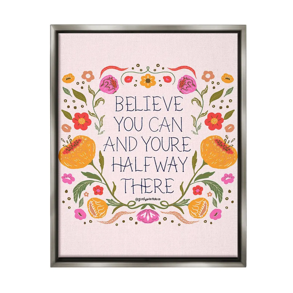 Add dimension to any room with our textured Framed Giclee Artwork. Our framed artwork is securely mounted into a 1.5-inch thick wood grain frame and ready to hang. Frames are available in three alluring styles: black, gray farmhouse and white. In addition, you should check out our oversized options if you want a statement piece. Stupell Wall Art is made in the USA.Features: Dimensions: 11 x 1.5 x 14 FramedFramed Giclee Products are available in the sizes 11"x14", 16"x20" or 24"x30". All Framed Giclee Products have a 1.5" Depth. Wall Art is Ready to Hang with Hardware Free Hanging. No installation required. For Easy Set Up Lean or Layer Artwork on Shelf or Against Wall.Our giclée prints are carefully mounted on a durable MDF backing, and then perfectly finished in a 1.5 inch thick woodgrain frame. Mounted frame colors include black, gray farmhouse and white. Made In USA.Artwork Relates To: Floral, Flower, Pattern, Botanical, Plant, Inspirational, Believe You Can and You're Halfway ThereDesign by Glad You're Here Co.