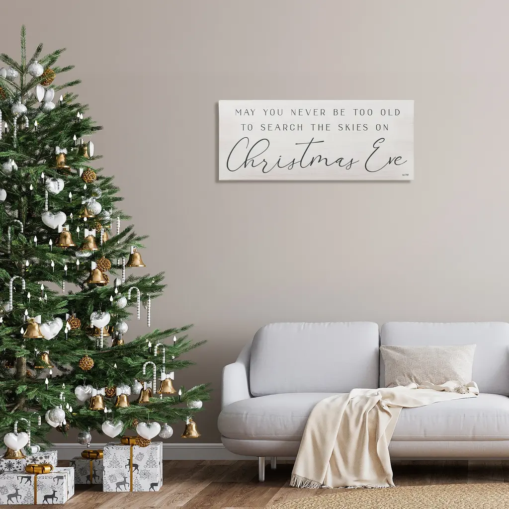 Stupell Inspiring Christmas Eve Typography Sentiment Script Canvas Wall Art - Grey - 40 X 17