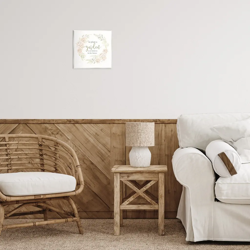 Our wall plaques start as high-quality lithograph prints mounted on durable 0.5-inch thick MDF wood. Each piece is hand finished and comes with a fresh layer of white foil on the sides to give it a crisp, clean look. Plaques arrive ready to hang without installation and come with removable plastic corners to keep them from damage in transit. Stupell Wall Art is made in the USA.Features: Dimensions: 12 x 0.5 x 12 InchesWall Art is Ready to Hang with Hardware Free Hanging. No installation required. For Easy Set Up Lean or Layer Artwork on Shelf or Against Wall.All of our wall plaques start off as high quality lithograph prints that are then mounted on durable 0.5 inch thick MDF wood. Each piece is hand finished and comes with a fresh layer of foil on the sides to give it a crisp clean look. Made In USA.Artwork Relates To: Plant, Floral, Pattern, Flower, Herbal, Herbs, Wreath, InspirationalDesign by Mollie B.