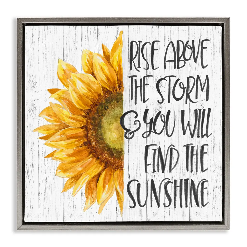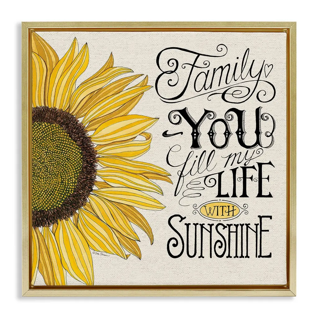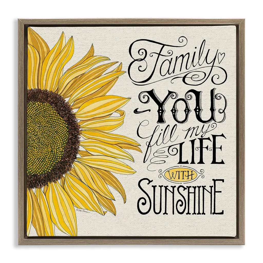 Elevate your home or office to the next level with Stupell Framed Floating Canvas Wall Art. Our premium hand-stretched canvas is mounted securely into a sturdy lightweight frame. The museum-style gap between the wrapped canvas and the box frame gives the illusion of floating artwork. Stupell Wall Art is made in the USA.Features: Dimensions: 18 x 1.7 x 18 Frame, 17 x 1.5 x 17 Canvas ArtFloating Frame Canvas Products are available in sizes 18"x18" and 25"x25". All Floating Frame Canvas Products have a 1.7" Depth.Wall Art is Ready to Hang with Hardware Free Hanging. No Installation required. For Easy Set Up Lean or Layer Artwork on Shelf or Against Wall. Artwork is Permently Fixed into the Frame.Our elevated 1.7" Thick Floating Frame is the perfect complement to our canvas style Wall Art. We use only the highest quality inks in house with industry leading printing solutions. Canvas is hand stretched over a durable wood foundation and then mounted securly into a Modern Box Frame. Made in the USA.Artwork Relates To: Phrase, Family, Flower, Floral, Sunflower, Vintage, Love, CountryDesign by Deb Strain