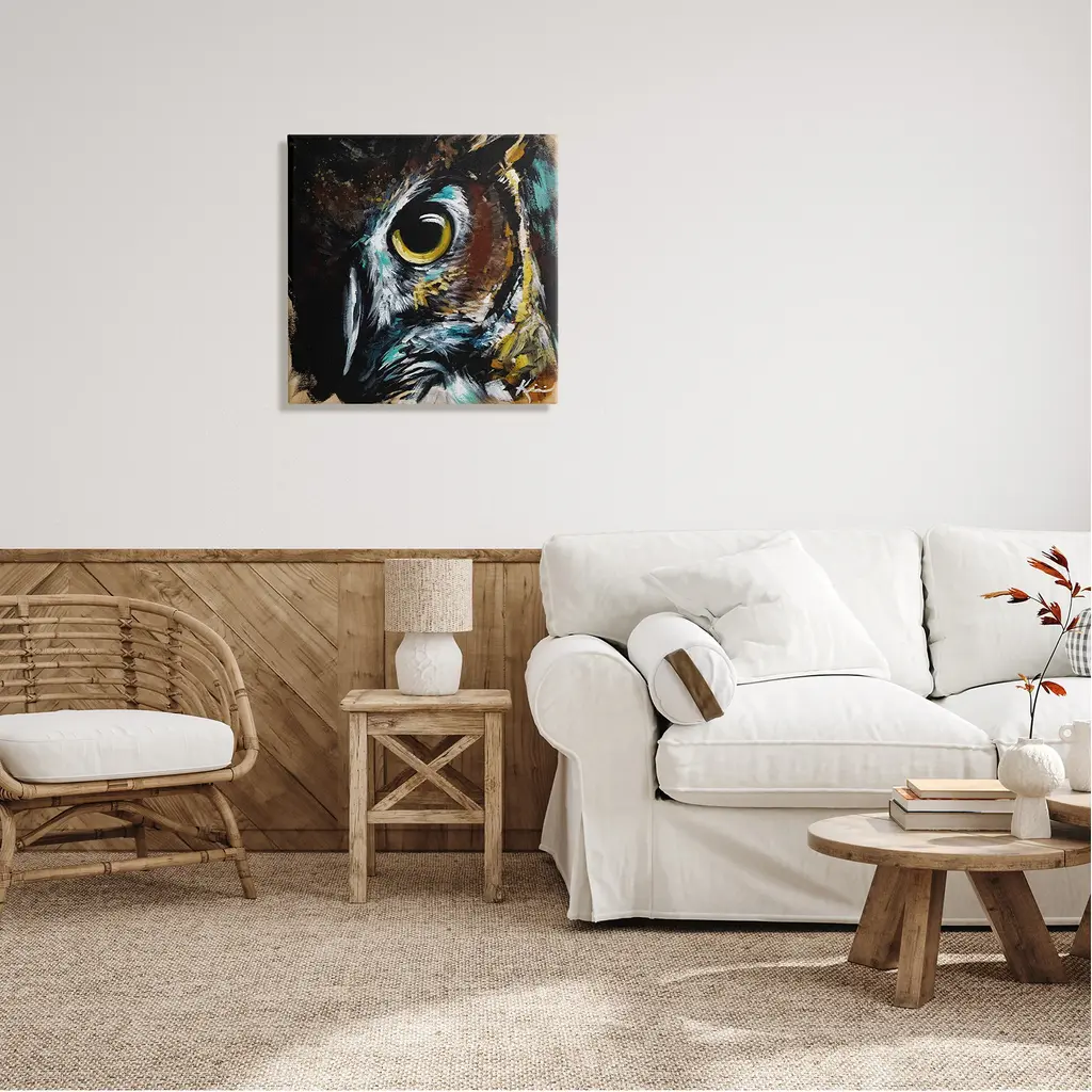 We create our stretched canvas to the highest standards. Using only the highest quality inks and canvas on Mimaki printers, we hand-cut and stretch each piece over a 1.5-inch thick wooden frame for hanging. As a result, the art comes ready to hang on the sturdy ledge with no installation required. Stupell Wall Art is made in the USA.Features: Dimensions: 17 x 1.5 x 17 InchesStretched Canvas Sizes Include Standard: 17 x 1.5 x 17 Large: 24 x 1.5 x 24 X-Large: 30 x 1.5 x 30 Oversized: 36 x 1.5 x 36Wall Art is Ready to Hang - No Installation or Hardware Needed. For Easy Set Up Lean or Layer Artwork on Shelf or Against Wall.Our stretched canvas is created with the highest standards. We use only the highest quality inks and canvas on our in house Mimaki printers, and then hand cut and stretch each piece over a 1.5 inch thick wooden frame for hanging. Made In USA.Artwork Relates To: Painting, Modern, Animal, Beak, Bird, Owl, Horned OwlDesign by Lindsay Kivi Fine Art