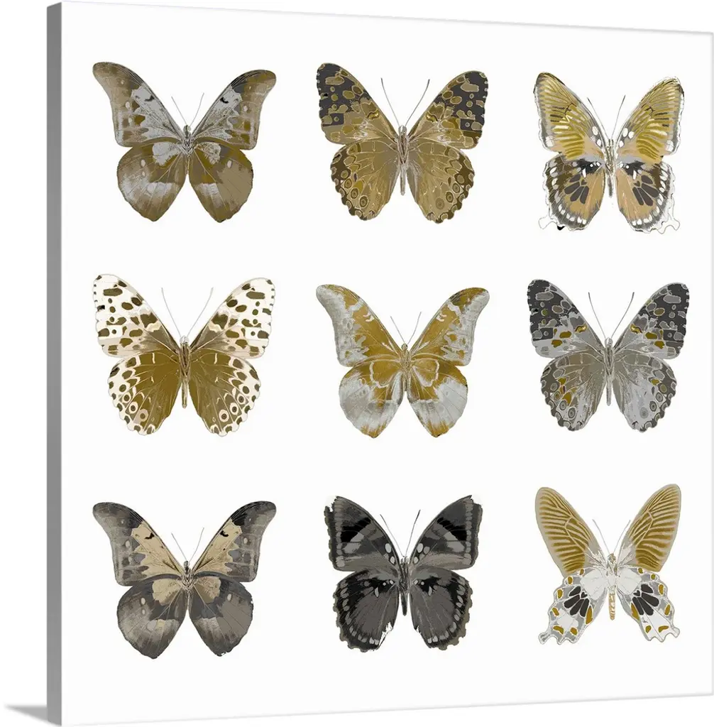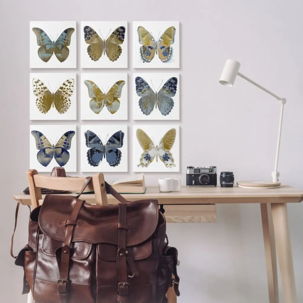 Stupell Intricate Butterfly Wing Patterns Blue Brown Tan 9Pc Multi Piece Canvas Wall Art Set - 12 X 12