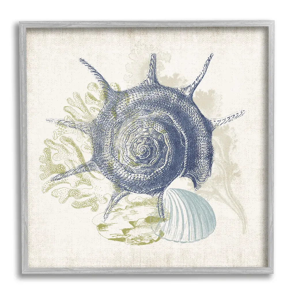 Our Framed Giclee Wall Art adds a touch of class to any space in your home or office. Frames are available in three alluring styles: black, gray farmhouse and white. Our textured artwork will add more depth and dimension to any space. Each piece is mounted with a 1.5 inch thick wood grain frame that is ready to hang! Looking for a statement piece? We have oversized artwork available.Features: Wall Art is Ready to Hang - No Installation or Hardware Needed. For Easy Set Up Lean or Layer Artwork on Shelf or Against Wall.Our giclee prints are carefully mounted on a durable MDF backing, and then perfectly finished in a 1.5 inch thick woodgrain frame. Mounted frame colors include black, gray farmhouse and white. Made In USA.Artwork Relates To: Sea Life; Seashell; Conch, Design by Victoria Barnes