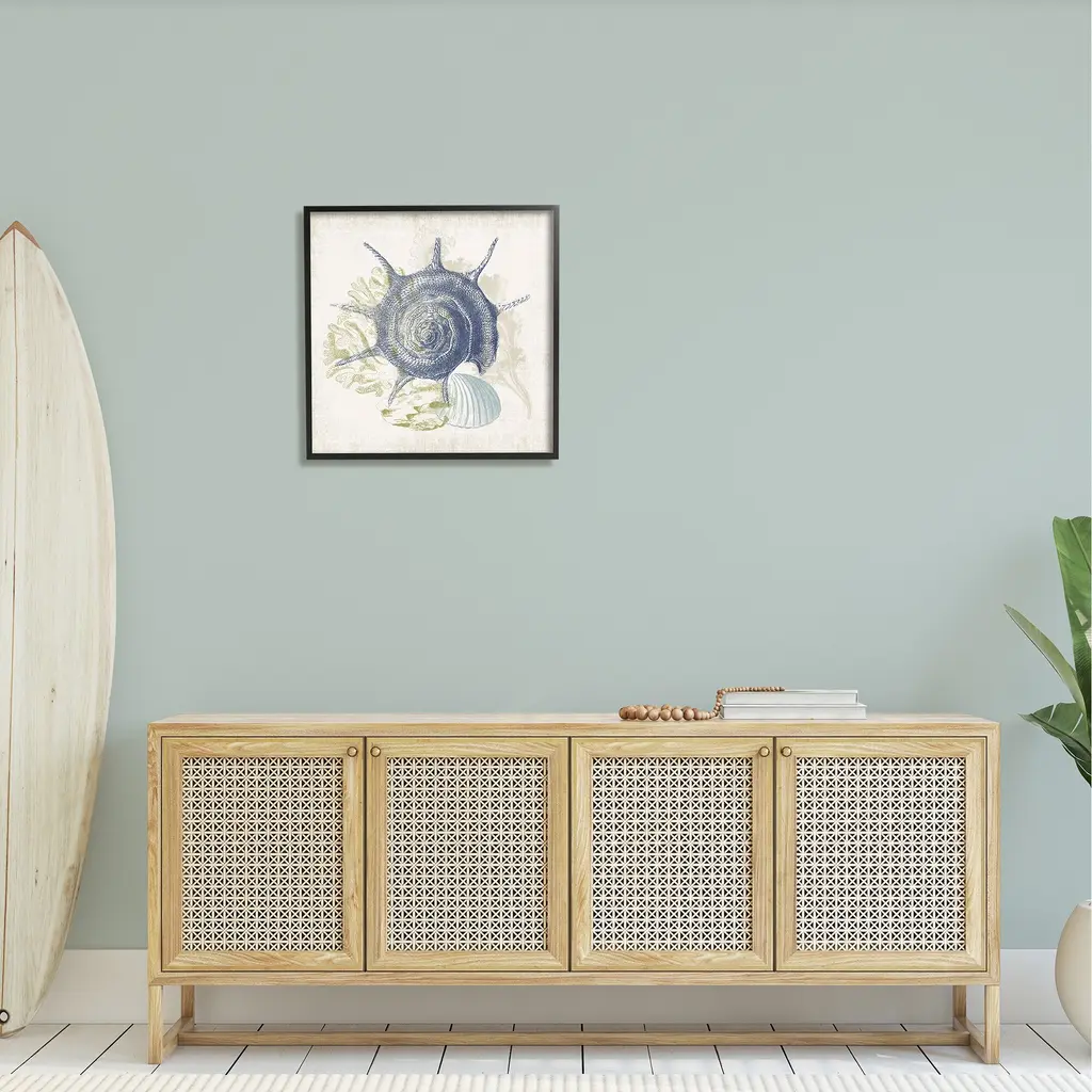 Our Framed Giclee Wall Art adds a touch of class to any space in your home or office. Frames are available in three alluring styles: black, gray farmhouse and white. Our textured artwork will add more depth and dimension to any space. Each piece is mounted with a 1.5 inch thick wood grain frame that is ready to hang! Looking for a statement piece? We have oversized artwork available.Features: Wall Art is Ready to Hang - No Installation or Hardware Needed. For Easy Set Up Lean or Layer Artwork on Shelf or Against Wall.Our giclee prints are carefully mounted on a durable MDF backing, and then perfectly finished in a 1.5 inch thick woodgrain frame. Mounted frame colors include black, gray farmhouse and white. Made In USA.Artwork Relates To: Sea Life; Seashell; Conch, Design by Victoria Barnes