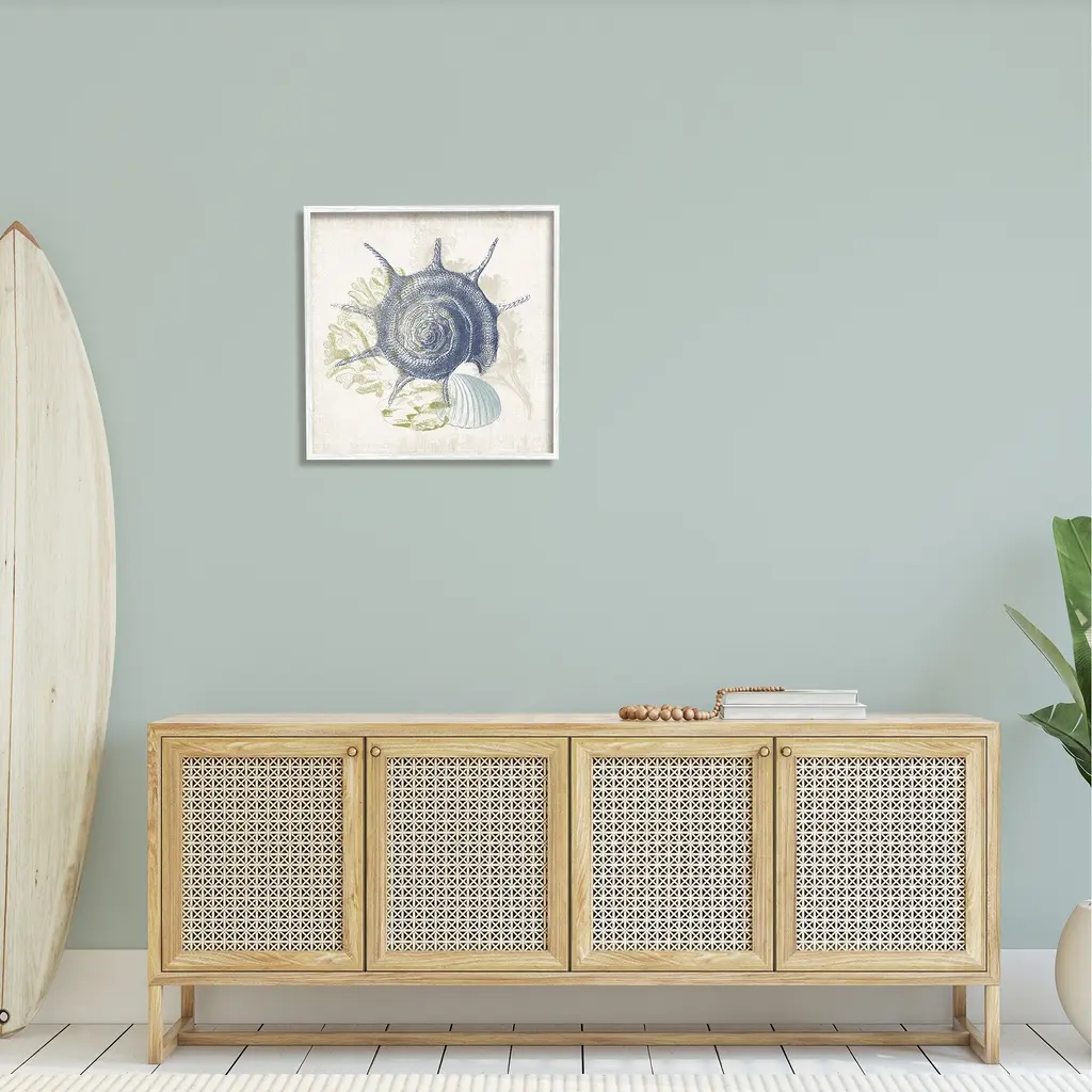 Our Framed Giclee Wall Art adds a touch of class to any space in your home or office. Frames are available in three alluring styles: black, gray farmhouse and white. Our textured artwork will add more depth and dimension to any space. Each piece is mounted with a 1.5 inch thick wood grain frame that is ready to hang! Looking for a statement piece? We have oversized artwork available.Features: Wall Art is Ready to Hang - No Installation or Hardware Needed. For Easy Set Up Lean or Layer Artwork on Shelf or Against Wall.Our giclee prints are carefully mounted on a durable MDF backing, and then perfectly finished in a 1.5 inch thick woodgrain frame. Mounted frame colors include black, gray farmhouse and white. Made In USA.Artwork Relates To: Sea Life; Seashell; Conch, Design by Victoria Barnes