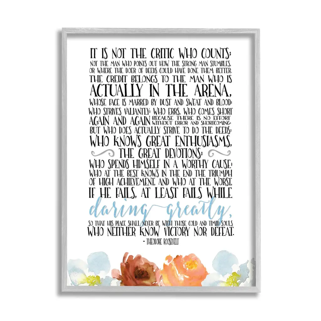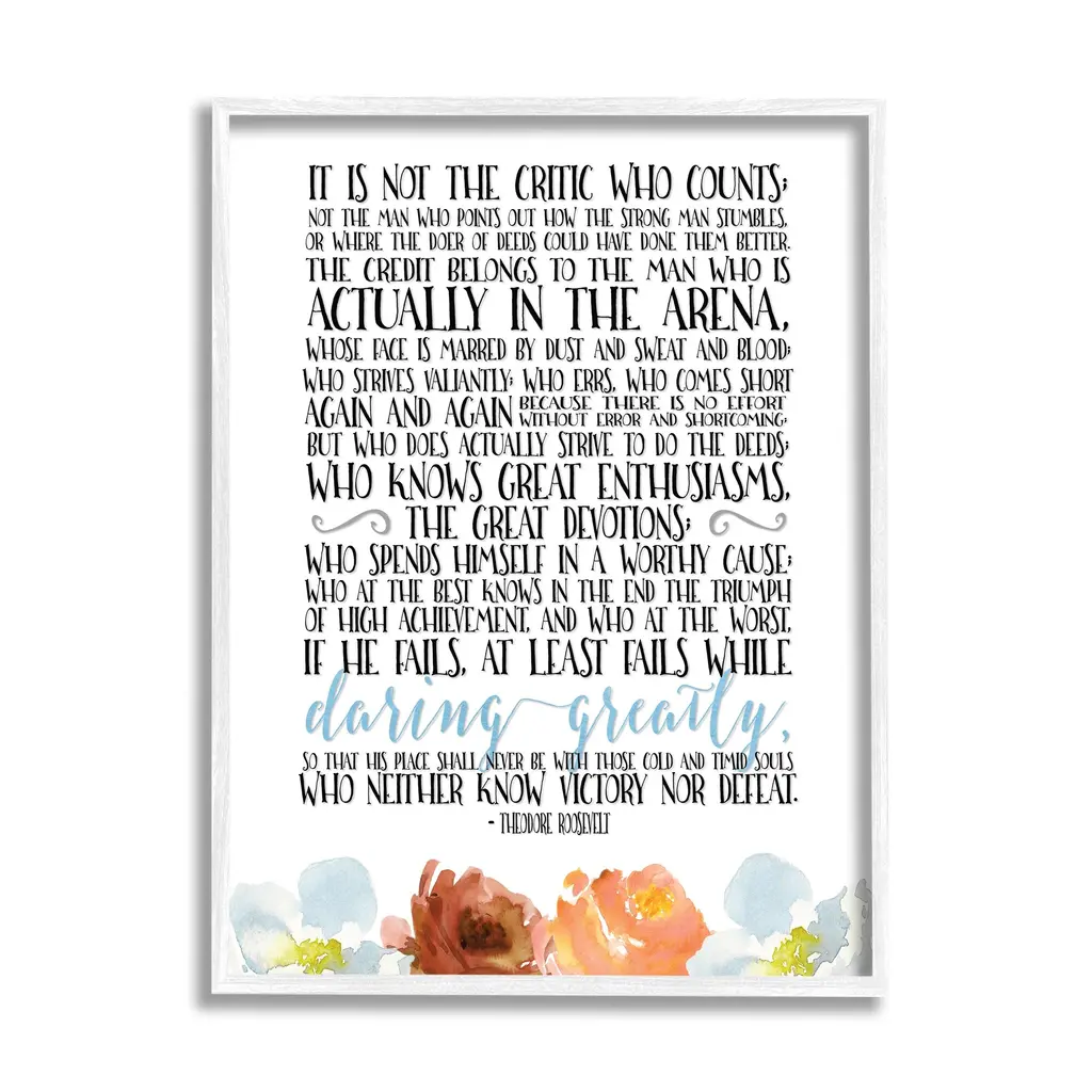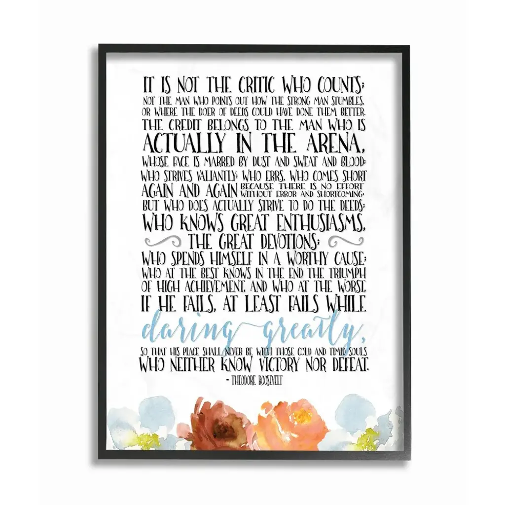 Stupell It Is Not The Critic Who Counts Roosevelt Floral Quote, 11 X 14, Design By Artist Tara Moss - Multi-Color - 16 X 20 - White