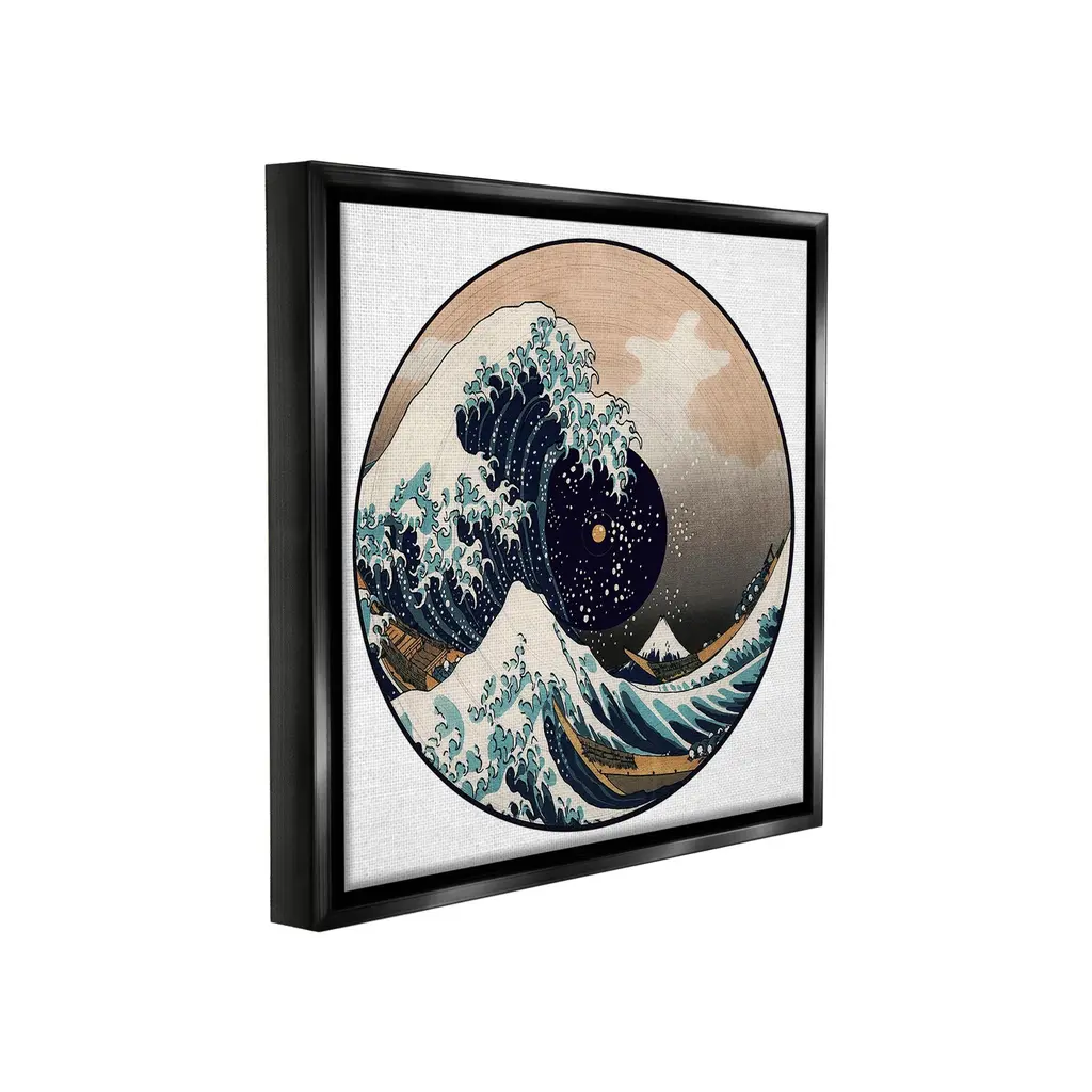 Elevate your home or office to the next level with Stupell Framed Floating Canvas Wall Art. Our premium hand-stretched canvas is mounted securely into a sturdy lightweight frame. The museum-style gap between the wrapped canvas and the box frame gives the illusion of floating artwork. Stupell Wall Art is made in the USA.Features: Dimensions: 18 x 1.7 x 18 Frame, 17 x 1.5 x 17 Canvas ArtFloating Frame Canvas Products are available in sizes 18"x18" and 25"x25". All Floating Frame Canvas Products have a 1.7" Depth.Wall Art is Ready to Hang with Hardware Free Hanging. No Installation required. For Easy Set Up Lean or Layer Artwork on Shelf or Against Wall. Artwork is Permently Fixed into the Frame.Our elevated 1.7" Thick Floating Frame is the perfect complement to our canvas style Wall Art. We use only the highest quality inks in house with industry leading printing solutions. Canvas is hand stretched over a durable wood foundation and then mounted securly into a Modern Box Frame. Made in the USA.Artwork Relates To: Sea, Water, Sea Waves, Vinyl Record, Music, Ocean, Nautical, Mountain, Traditional, JapaneseDesign by Carrie Cantwell