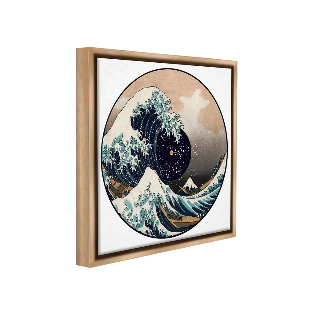 Elevate your home or office to the next level with Stupell Framed Floating Canvas Wall Art. Our premium hand-stretched canvas is mounted securely into a sturdy lightweight frame. The museum-style gap between the wrapped canvas and the box frame gives the illusion of floating artwork. Stupell Wall Art is made in the USA.Features: Dimensions: 18 x 1.7 x 18 Frame, 17 x 1.5 x 17 Canvas ArtFloating Frame Canvas Products are available in sizes 18"x18" and 25"x25". All Floating Frame Canvas Products have a 1.7" Depth.Wall Art is Ready to Hang with Hardware Free Hanging. No Installation required. For Easy Set Up Lean or Layer Artwork on Shelf or Against Wall. Artwork is Permently Fixed into the Frame.Our elevated 1.7" Thick Floating Frame is the perfect complement to our canvas style Wall Art. We use only the highest quality inks in house with industry leading printing solutions. Canvas is hand stretched over a durable wood foundation and then mounted securly into a Modern Box Frame. Made in the USA.Artwork Relates To: Sea, Water, Sea Waves, Vinyl Record, Music, Ocean, Nautical, Mountain, Traditional, JapaneseDesign by Carrie Cantwell