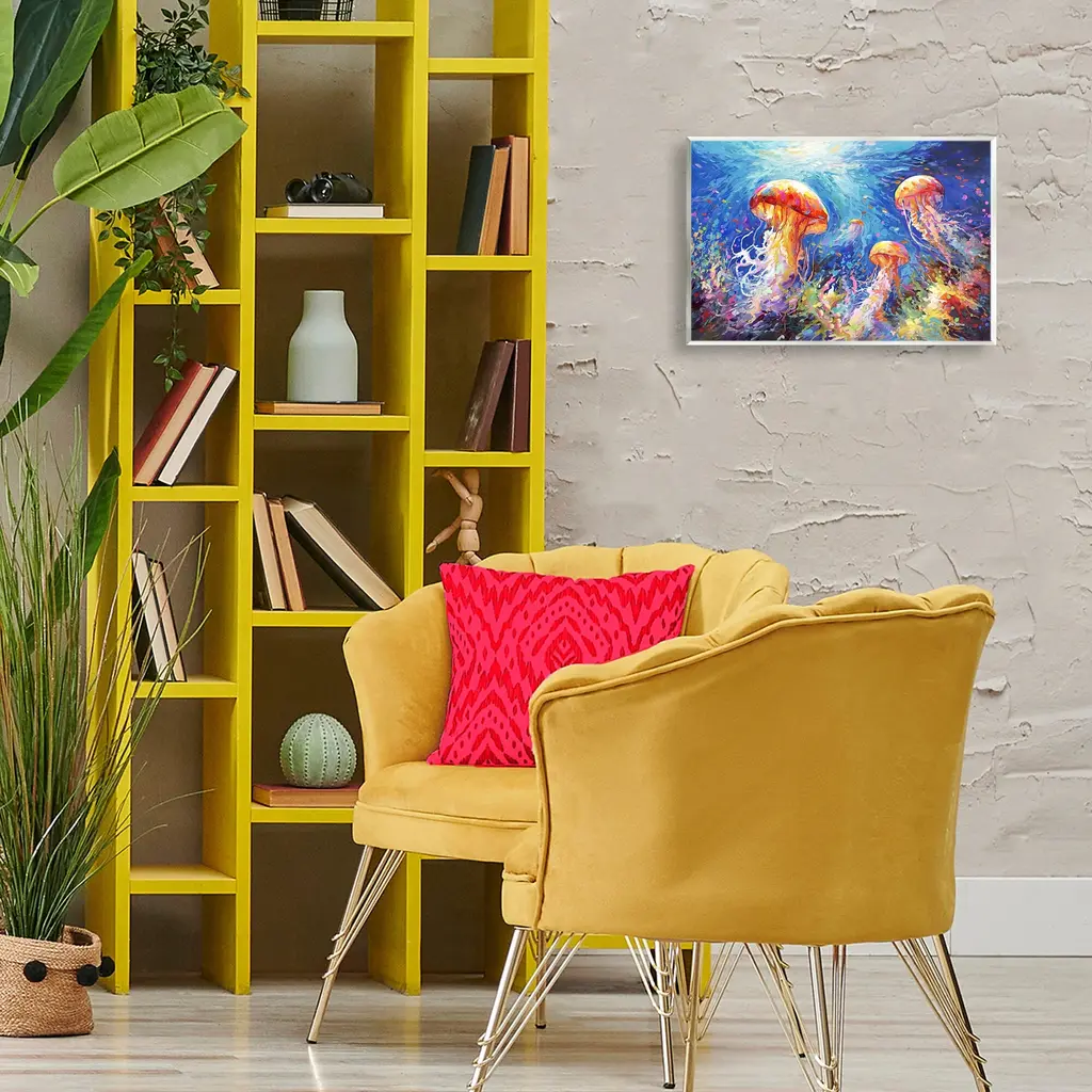 Our wall plaques start as high-quality lithograph prints mounted on durable 0.5-inch thick MDF wood. Each piece is hand finished and comes with a fresh layer of white foil on the sides to give it a crisp, clean look. Plaques arrive ready to hang without installation and come with removable plastic corners to keep them from damage in transit. Stupell Wall Art is made in the USA.Features: Dimensions: 15 x 0.5 x 10 InchesWall Plaque Product Sizes Include 15"x10" and 19"x13". All wall plaque products have a 0.5" Depth. Wall Art is Ready to Hang with Hardware Free Hanging. No installation required. For Easy Set Up Lean or Layer Artwork on Shelf or Against Wall.All of our wall plaques start off as high quality lithograph prints that are then mounted on durable 0.5 inch thick MDF wood. Each piece is hand finished and comes with a fresh layer of foil on the sides to give it a crisp clean look. Made In USA.Artwork Relates To: Animal, Sea Life, Invertebrate, Jellyfish, Aquatic, Water, Nature, Sea, Reef, ModernDesign by Leon Devenice