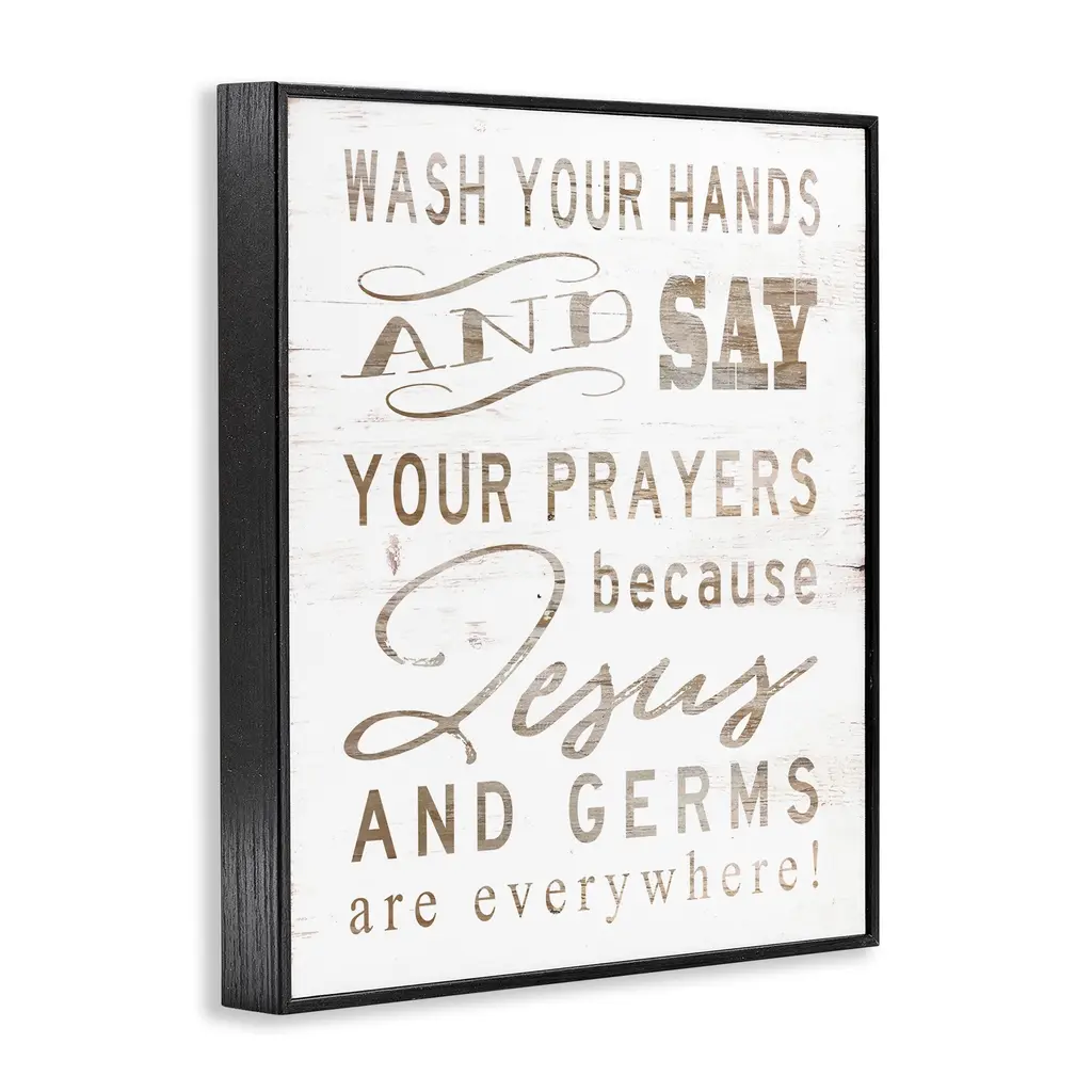 Stupell Jesus And Germs Are Everywhere Wash Your Hands Sign Black Framed Art, 11x14, Proudly Made In Usa - 24 X 30 - Black