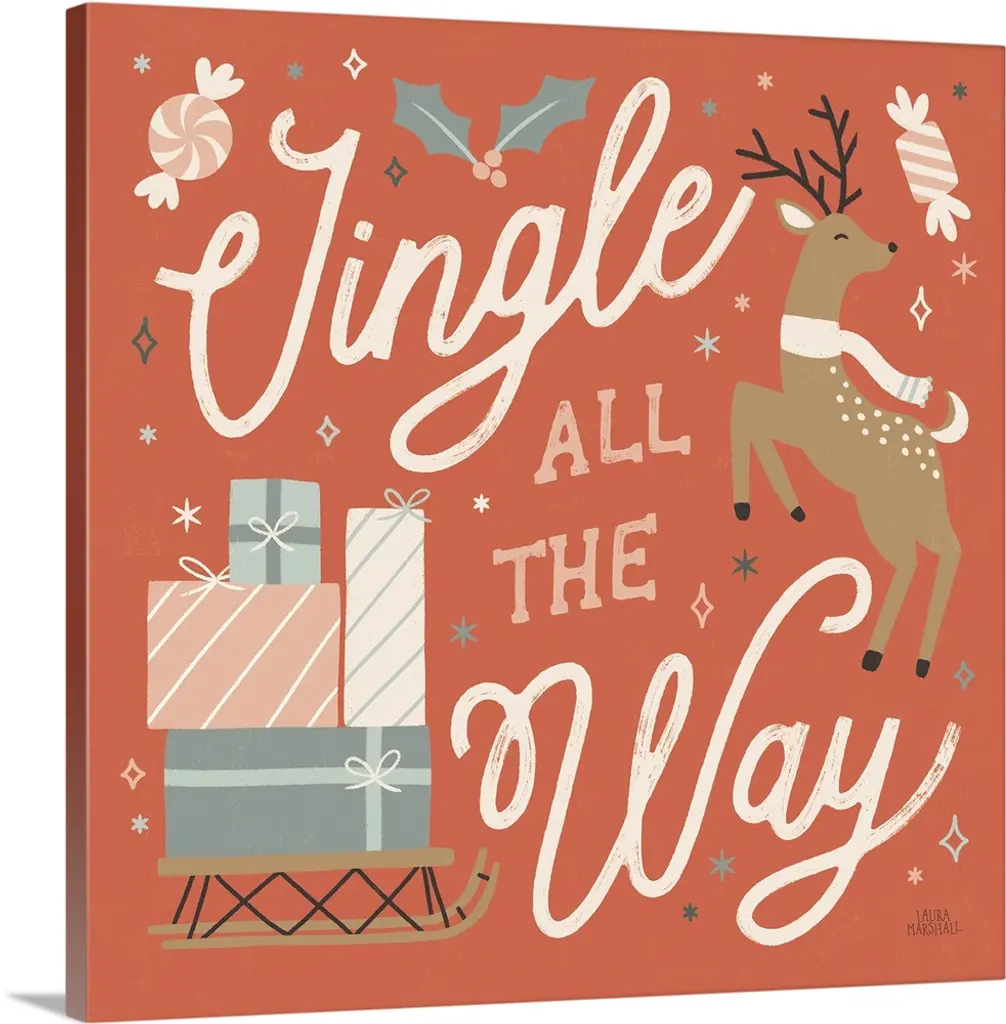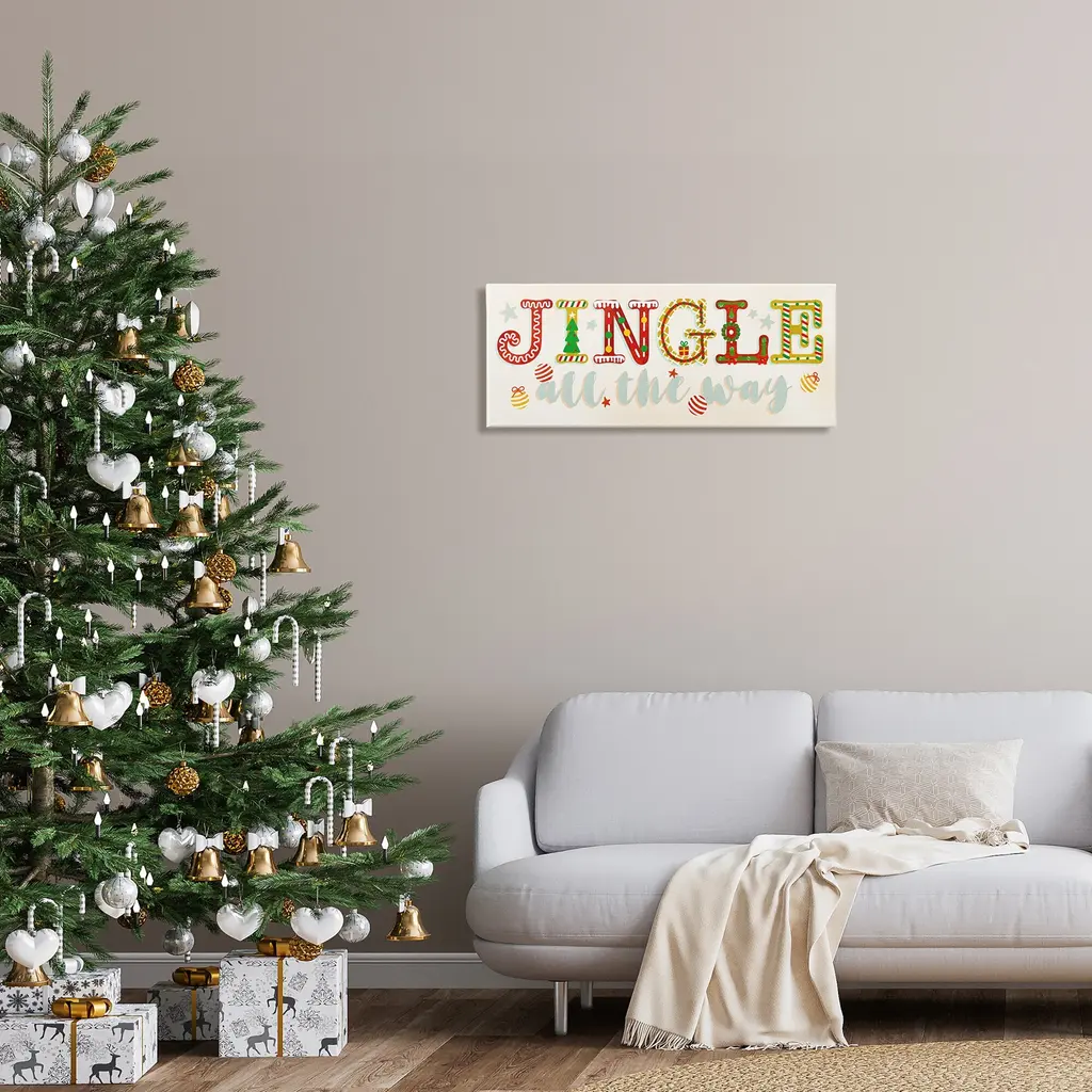 Stupell Jingle All The Way Festive Holiday Typography Canvas Wall Art - Multi-Color - 30 X 13