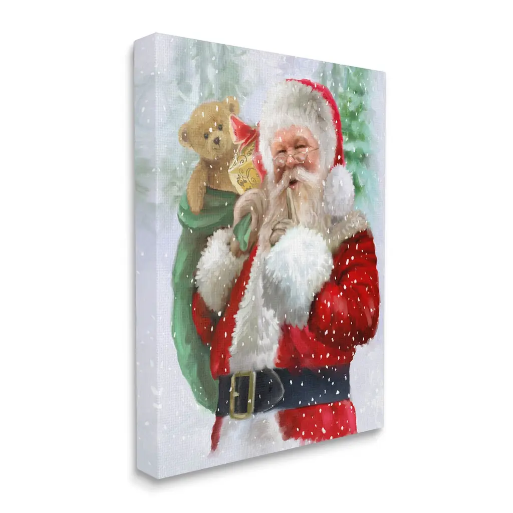 Stupell Jolly Shh Santa Claus Gift Sack Canvas Wall Art, Design By P.s. Art - Multi-Color - 24 X 30