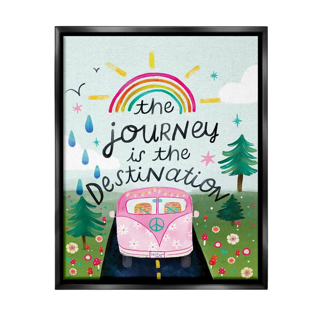 Elevate your home or office to the next level with Stupell Framed Floating Canvas Wall Art. Our premium hand-stretched canvas is mounted securely into a sturdy lightweight frame. The museum-style gap between the wrapped canvas and the box frame gives the illusion of floating artwork. Stupell Wall Art is made in the USA.Features: Dimensions: 17 x 1.7 x 21 Frame, 16 x 1.5 x 20 Canvas ArtFloating Frame Canvas Products are available in sizes 17"x21" and 25"x31". All Floating Frame Canvas Products have a 1.7" Depth.Wall Art is Ready to Hang with Hardware Free Hanging. No Installation required. For Easy Set Up Lean or Layer Artwork on Shelf or Against Wall. Artwork is Permently Fixed into the Frame.Our elevated 1.7" Thick Floating Frame is the perfect complement to our canvas style Wall Art. We use only the highest quality inks in house with industry leading printing solutions. Canvas is hand stretched over a durable wood foundation and then mounted securly into a Modern Box Frame. Made in the USA.Artwork Relates To: Rainbow, Nature, Landscape, Mushroom, Flower, Floral, Van, Driving, Adventure, Bird, Plant, Tree, The Journey is the DestinationDesign by Glad You're Here Co.