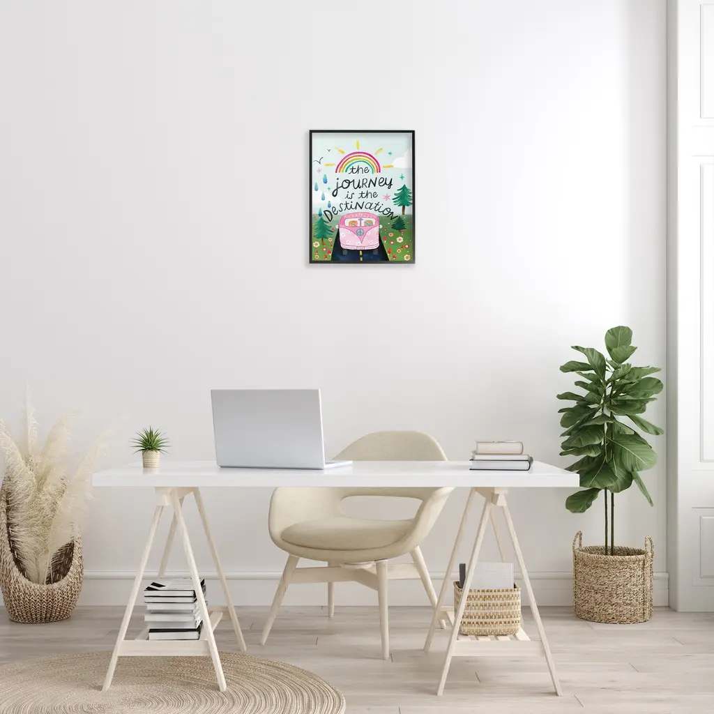 Add dimension to any room with our textured Framed Giclee Artwork. Our framed artwork is securely mounted into a 1.5-inch thick wood grain frame and ready to hang. Frames are available in three alluring styles: black, gray farmhouse and white. In addition, you should check out our oversized options if you want a statement piece. Stupell Wall Art is made in the USA.Features: Dimensions: 11 x 1.5 x 14 FramedFramed Giclee Products are available in the sizes 11"x14", 16"x20" or 24"x30". All Framed Giclee Products have a 1.5" Depth. Wall Art is Ready to Hang with Hardware Free Hanging. No installation required. For Easy Set Up Lean or Layer Artwork on Shelf or Against Wall.Our giclée prints are carefully mounted on a durable MDF backing, and then perfectly finished in a 1.5 inch thick woodgrain frame. Mounted frame colors include black, gray farmhouse and white. Made In USA.Artwork Relates To: Rainbow, Nature, Landscape, Mushroom, Flower, Floral, Van, Driving, Adventure, Bird, Plant, Tree, The Journey is the DestinationDesign by Glad You're Here Co.