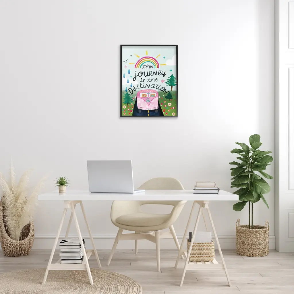 Add dimension to any room with our textured Framed Giclee Artwork. Our framed artwork is securely mounted into a 1.5-inch thick wood grain frame and ready to hang. Frames are available in three alluring styles: black, gray farmhouse and white. In addition, you should check out our oversized options if you want a statement piece. Stupell Wall Art is made in the USA.Features: Dimensions: 11 x 1.5 x 14 FramedFramed Giclee Products are available in the sizes 11"x14", 16"x20" or 24"x30". All Framed Giclee Products have a 1.5" Depth. Wall Art is Ready to Hang with Hardware Free Hanging. No installation required. For Easy Set Up Lean or Layer Artwork on Shelf or Against Wall.Our giclée prints are carefully mounted on a durable MDF backing, and then perfectly finished in a 1.5 inch thick woodgrain frame. Mounted frame colors include black, gray farmhouse and white. Made In USA.Artwork Relates To: Rainbow, Nature, Landscape, Mushroom, Flower, Floral, Van, Driving, Adventure, Bird, Plant, Tree, The Journey is the DestinationDesign by Glad You're Here Co.