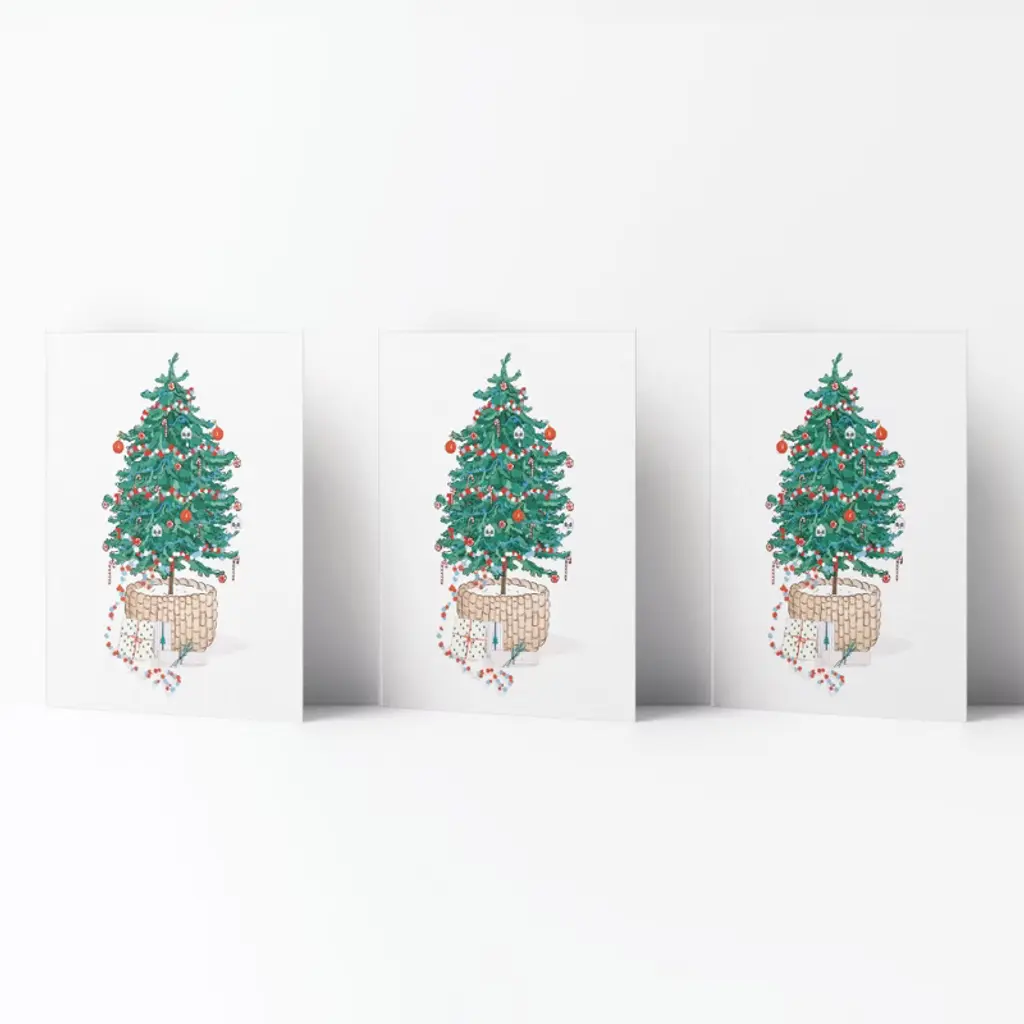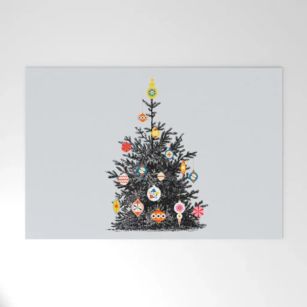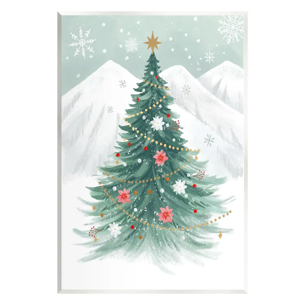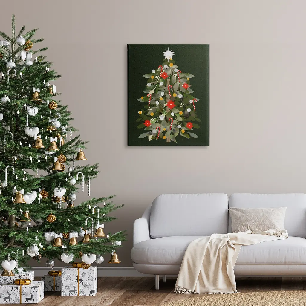 Stupell Jovial Christmas Tree Decorated Ornaments Poinsettia Flowers Canvas Wall Art - Red - 30 X 40