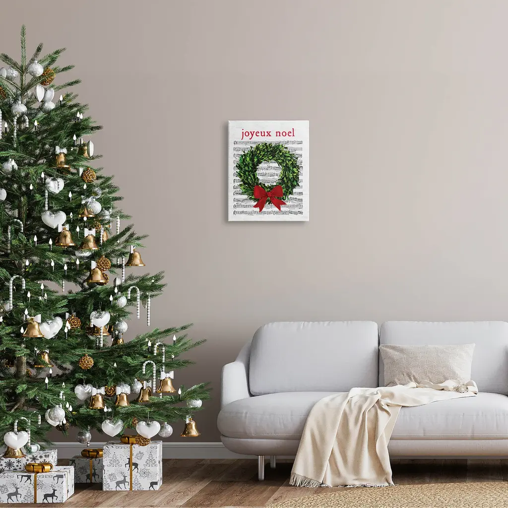 Proudly made in the USA, Our stretched canvas is created with the highest standards. We use only the highest quality inks and canvas on our in house Mimaki printers, and then hand cut and stretch each piece over a 1.5 inch thick wooden frame for hanging. The art comes ready to hang with no installation required. Not to mention, at this size, it is sure to be the focal point of any room!Features:Dimensions: 16 x 1.5 x 20 InchesStretched Canvas Sizes IncludeStandard: 16 x 1.5 x 20Large: 20 x 1.5 x 30X-Large: 30 x 1.5 x 40Oversized: 36 x 1.5 x 48Wall Art is Ready to Hang - No Installation or Hardware Needed. For Easy Set Up Lean or Layer Artwork on Shelf or Against Wall.Our stretched canvas is created with the highest standards. We use only the highest quality inks and canvas on our in house Mimaki printers, and then hand cut and stretch each piece over a 1.5 inch thick wooden frame for hanging. Made In USA.Artwork Relates To: Wreath; Plant; Bow, Music, Sheet Music, Christmas, Seasonal, HolidayDesign by Lettered and Lined