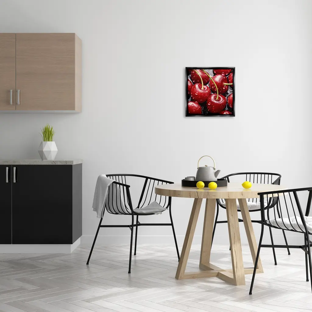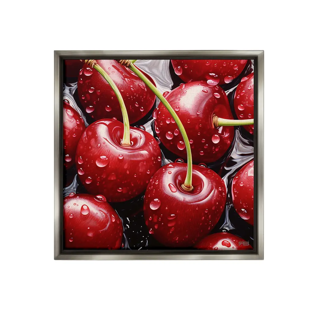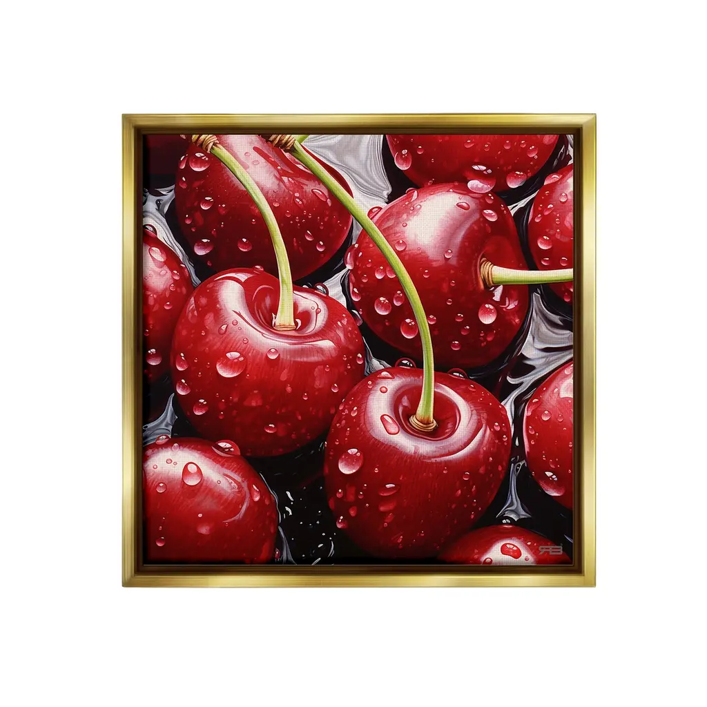 Elevate your home or office to the next level with Stupell Framed Floating Canvas Wall Art. Our premium hand-stretched canvas is mounted securely into a sturdy lightweight frame. The museum-style gap between the wrapped canvas and the box frame gives the illusion of floating artwork. Stupell Wall Art is made in the USA.Features: Dimensions: 18 x 1.7 x 18 Frame, 17 x 1.5 x 17 Canvas ArtFloating Frame Canvas Products are available in sizes 18"x18" and 25"x25". All Floating Frame Canvas Products have a 1.7" Depth.Wall Art is Ready to Hang with Hardware Free Hanging. No Installation required. For Easy Set Up Lean or Layer Artwork on Shelf or Against Wall. Artwork is Permently Fixed into the Frame.Our elevated 1.7" Thick Floating Frame is the perfect complement to our canvas style Wall Art. We use only the highest quality inks in house with industry leading printing solutions. Canvas is hand stretched over a durable wood foundation and then mounted securly into a Modern Box Frame. Made in the USA.Artwork Relates To: Food, Fruit, Plant, Produce, Cherry, Pattern, Summer, Spring, RedDesign by RB
