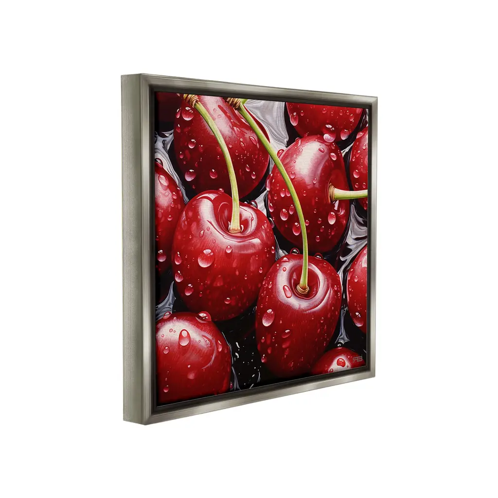 Elevate your home or office to the next level with Stupell Framed Floating Canvas Wall Art. Our premium hand-stretched canvas is mounted securely into a sturdy lightweight frame. The museum-style gap between the wrapped canvas and the box frame gives the illusion of floating artwork. Stupell Wall Art is made in the USA.Features: Dimensions: 18 x 1.7 x 18 Frame, 17 x 1.5 x 17 Canvas ArtFloating Frame Canvas Products are available in sizes 18"x18" and 25"x25". All Floating Frame Canvas Products have a 1.7" Depth.Wall Art is Ready to Hang with Hardware Free Hanging. No Installation required. For Easy Set Up Lean or Layer Artwork on Shelf or Against Wall. Artwork is Permently Fixed into the Frame.Our elevated 1.7" Thick Floating Frame is the perfect complement to our canvas style Wall Art. We use only the highest quality inks in house with industry leading printing solutions. Canvas is hand stretched over a durable wood foundation and then mounted securly into a Modern Box Frame. Made in the USA.Artwork Relates To: Food, Fruit, Plant, Produce, Cherry, Pattern, Summer, Spring, RedDesign by RB
