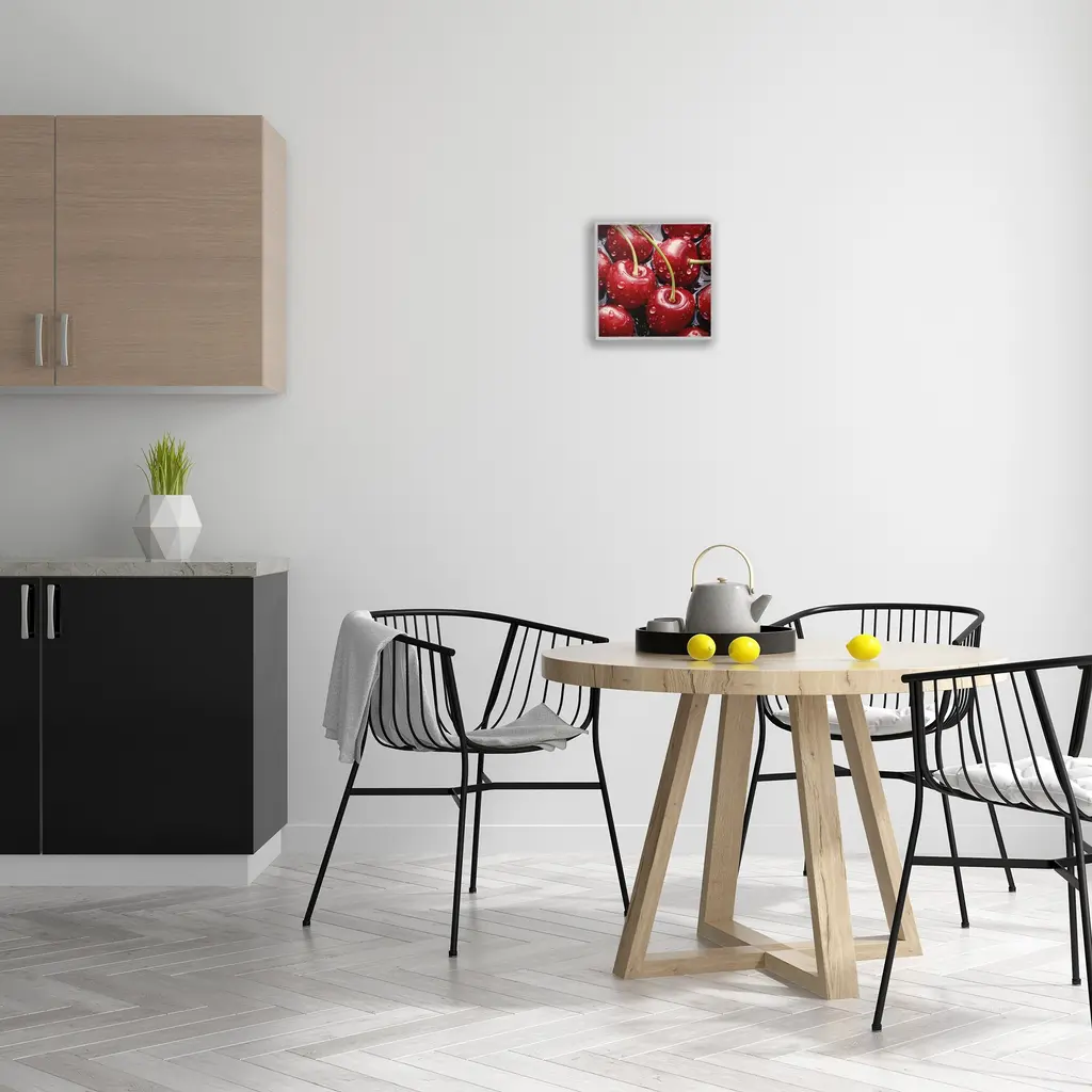 Add dimension to any room with our textured Framed Giclee Artwork. Our framed artwork is securely mounted into a 1.5-inch thick wood grain frame and ready to hang. Frames are available in three alluring styles: black, gray farmhouse and white. In addition, you should check out our oversized options if you want a statement piece. Stupell Wall Art is made in the USA.Features: Dimensions: 12 x 1.5 x 12 FramedFramed Giclee Product Sizes Include 12"x12", 17"x17", and 24"x24". Framed Giclee Products have a 1.5" Depth. Wall Art is Ready to Hang with Hardware Free Hanging. No installation required. For Easy Set Up Lean or Layer Artwork on Shelf or Against Wall.Our giclée prints are carefully mounted on a durable MDF backing, and then perfectly finished in a 1.5 inch thick woodgrain frame. Mounted frame colors include black, gray farmhouse and white. Made In USA.Artwork Relates To: Food, Fruit, Plant, Produce, Cherry, Pattern, Summer, Spring, RedDesign by RB