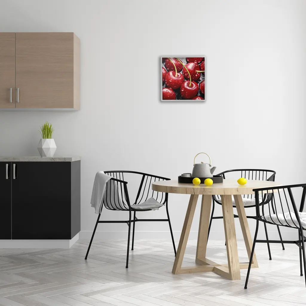 Add dimension to any room with our textured Framed Giclee Artwork. Our framed artwork is securely mounted into a 1.5-inch thick wood grain frame and ready to hang. Frames are available in three alluring styles: black, gray farmhouse and white. In addition, you should check out our oversized options if you want a statement piece. Stupell Wall Art is made in the USA.Features: Dimensions: 12 x 1.5 x 12 FramedFramed Giclee Product Sizes Include 12"x12", 17"x17", and 24"x24". Framed Giclee Products have a 1.5" Depth. Wall Art is Ready to Hang with Hardware Free Hanging. No installation required. For Easy Set Up Lean or Layer Artwork on Shelf or Against Wall.Our giclée prints are carefully mounted on a durable MDF backing, and then perfectly finished in a 1.5 inch thick woodgrain frame. Mounted frame colors include black, gray farmhouse and white. Made In USA.Artwork Relates To: Food, Fruit, Plant, Produce, Cherry, Pattern, Summer, Spring, RedDesign by RB