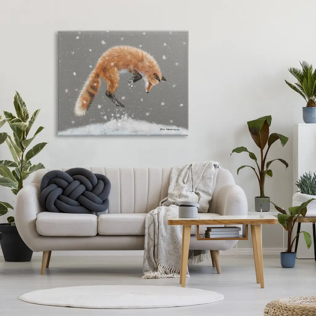 Stupell Jumping Fox Winter Snowfall Canvas Wall Art By Roy Thompson - 48 X 36
