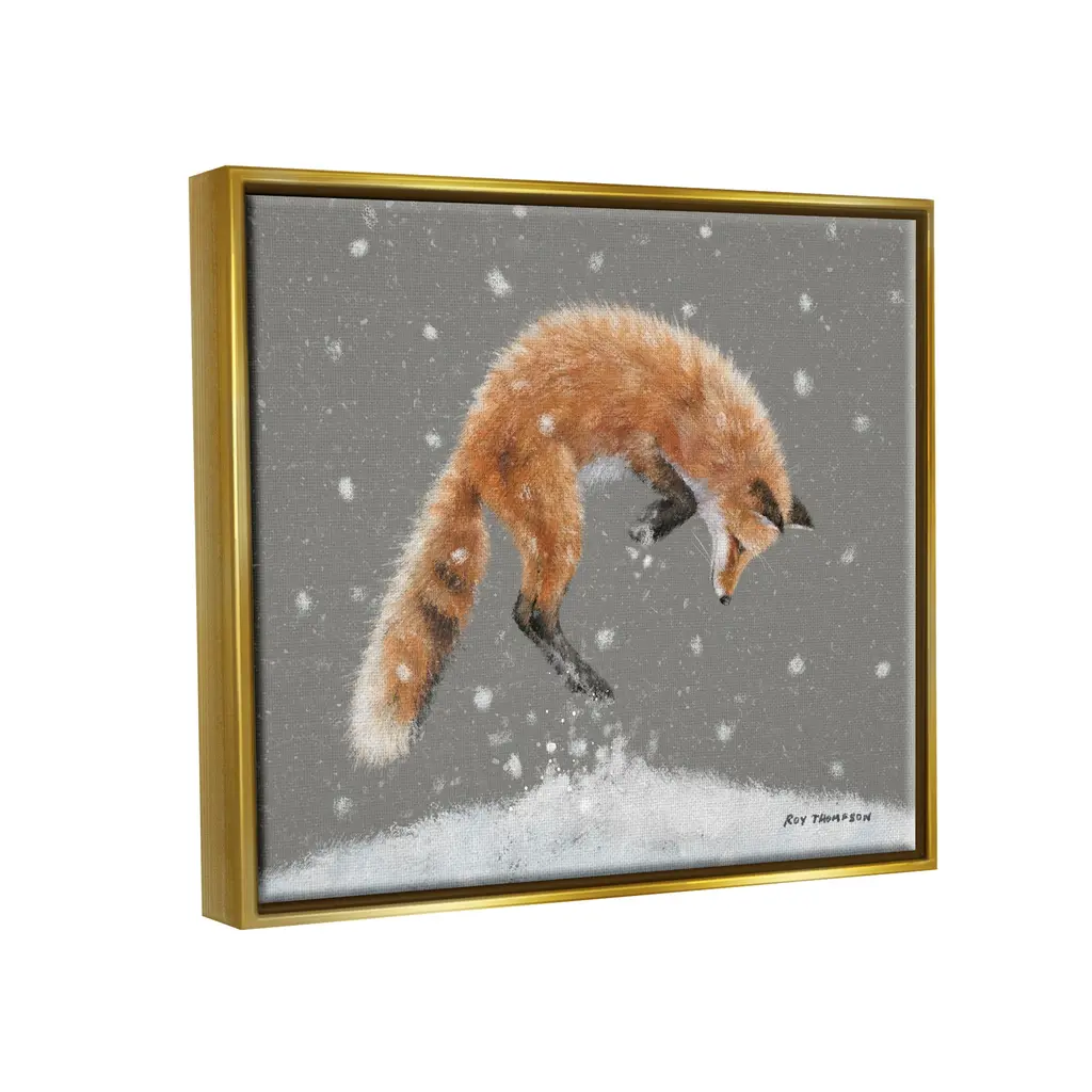 Elevate your home or office to the next level with Stupell Framed Floating Canvas Wall Art. Our premium hand-stretched canvas is mounted securely into a sturdy lightweight frame. The museum-style gap between the wrapped canvas and the box frame gives the illusion of floating artwork. Stupell Wall Art is made in the USA.Features: Dimensions: 21 x 1.7 x 17 Frame, 20 x 1.5 x 16 Canvas ArtFloating Frame Sizes Include Standard: 21 x 1.7 x 17 Oversized: 31 x 1.7 x 25Wall Art is Ready to Hang - No Installation or Hardware Needed. For Easy Set Up Lean or Layer Artwork on Shelf or Against Wall.Our elevated 1.7" Thick Floating Frame is the perfect complement to our canvas style Wall Art. We use only the highest quality inks in house with industry leading printing solutions. Canvas is hand stretched over a durable wood foundation and then mounted securly into a Modern Box Frame. Made in the USA.Artwork Relates To: Animal, Fox, Mammal, Wildlife, Canine, Nature, Snow, WinterDesign by Roy Thompson