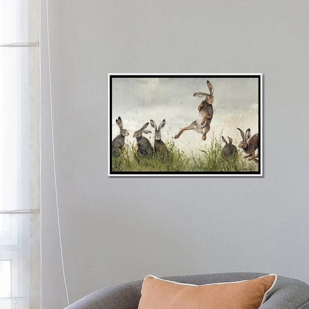 Elevate your home or office to the next level with Stupell Framed Floating Canvas Wall Art. Our premium hand-stretched canvas is mounted securely into a sturdy lightweight frame. The museum-style gap between the wrapped canvas and the box frame gives the illusion of floating artwork. Stupell Wall Art is made in the USA.Features: Dimensions: 25 x 1.7 x 11 Frame, 24 x 1.5 x 10 Canvas ArtFloating Frame Canvas Products are available in sizes 25"x11" and 31"x14". All Floating Frame Canvas Products have a 1.7" Depth.Wall Art is Ready to Hang with Hardware Free Hanging. No Installation required. For Easy Set Up Lean or Layer Artwork on Shelf or Against Wall. Artwork is Permently Fixed into the Frame.Our elevated 1.7" Thick Floating Frame is the perfect complement to our canvas style Wall Art. We use only the highest quality inks in house with industry leading printing solutions. Canvas is hand stretched over a durable wood foundation and then mounted securly into a Modern Box Frame. Made in the USA.Artwork Relates To: Animal, Hare, Mammal, Painting, Rabbit, Landscape, NatureDesign by Maggie Vandewalle