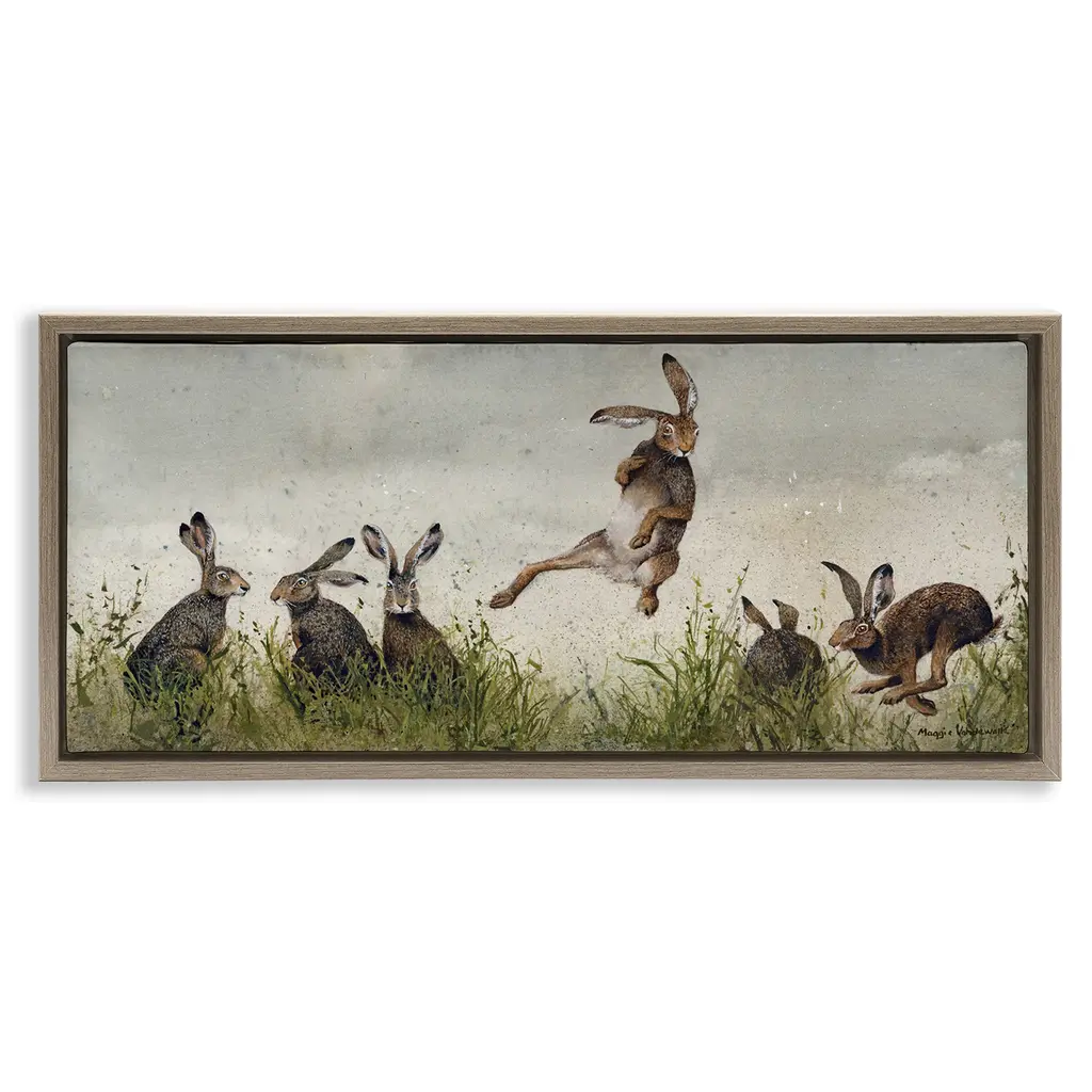 Stupell Jumping Hares In Wild Framed Floater Canvas Wall Art Design By Maggie Vandewalle - 25 X 11 - Grey