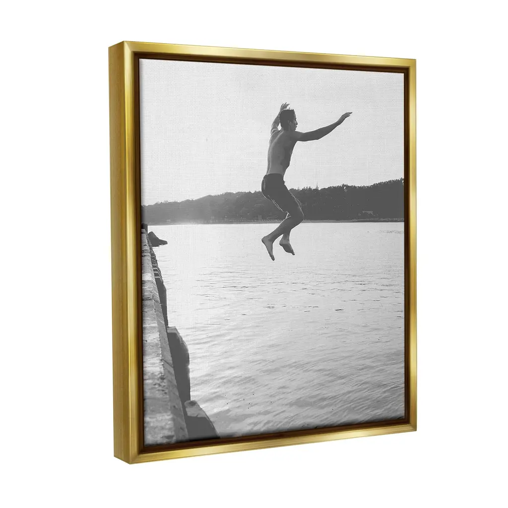 Stupell Jumping In Lake Photography Framed Floater Canvas Wall Art Design By Lil' Rue - 17 X 21 - Gold