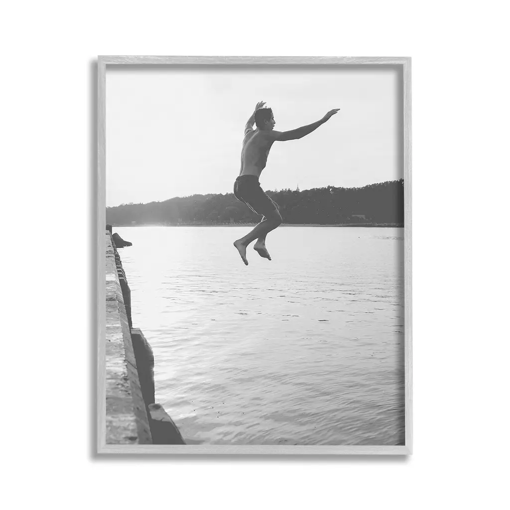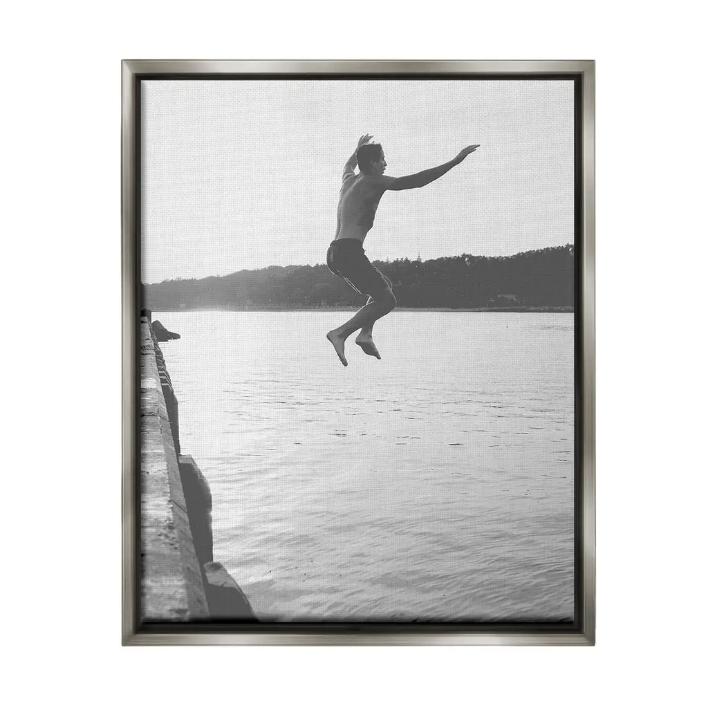 Elevate your home or office to the next level with Stupell Framed Floating Canvas Wall Art. Our premium hand-stretched canvas is mounted securely into a sturdy lightweight frame. The museum-style gap between the wrapped canvas and the box frame gives the illusion of floating artwork. Stupell Wall Art is made in the USA.Features: Dimensions: 17 x 1.7 x 21 Frame, 16 x 1.5 x 20 Canvas ArtFloating Frame Canvas Products are available in sizes 17"x21" and 25"x31". All Floating Frame Canvas Products have a 1.7" Depth.Wall Art is Ready to Hang with Hardware Free Hanging. No Installation required. For Easy Set Up Lean or Layer Artwork on Shelf or Against Wall. Artwork is Permently Fixed into the Frame.Our elevated 1.7" Thick Floating Frame is the perfect complement to our canvas style Wall Art. We use only the highest quality inks in house with industry leading printing solutions. Canvas is hand stretched over a durable wood foundation and then mounted securly into a Modern Box Frame. Made in the USA.Artwork Relates To: Person, Water, Waterfront, Swimsuit, Ocean, Sea, Water, Swimming, Monochrome, PhotographyDesign by Lil' Rue