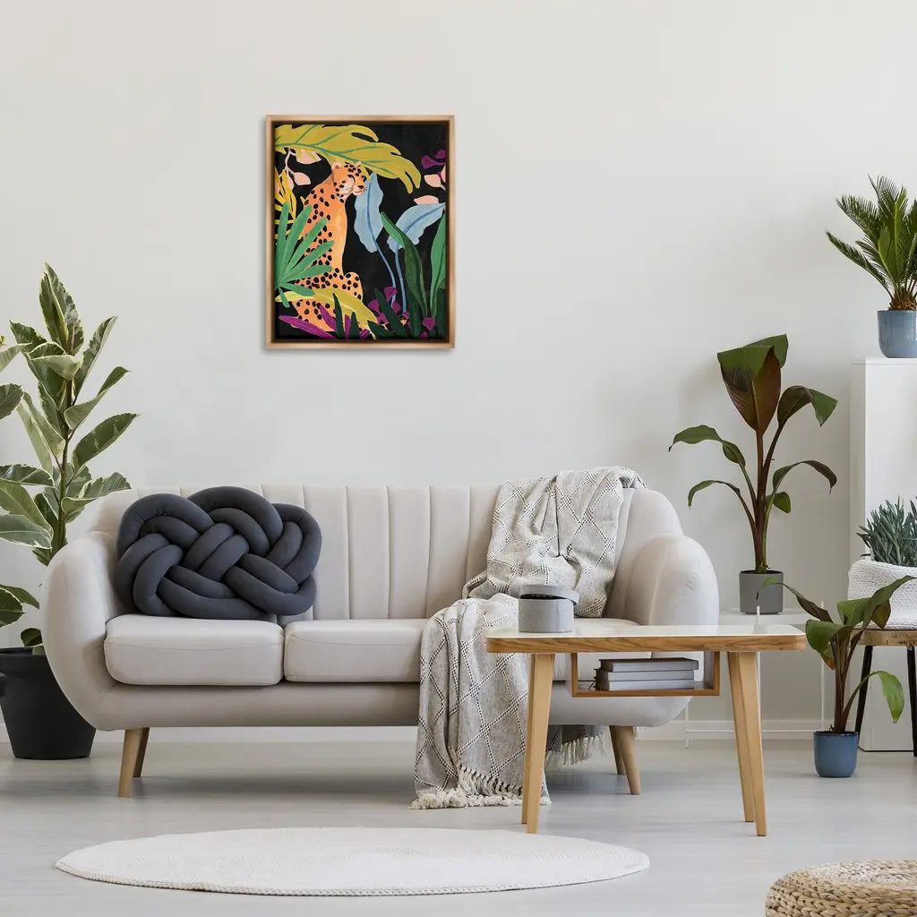 Elevate your home or office to the next level with Stupell Framed Floating Canvas Wall Art. Our premium hand-stretched canvas is mounted securely into a sturdy lightweight frame. The museum-style gap between the wrapped canvas and the box frame gives the illusion of floating artwork. Stupell Wall Art is made in the USA.Features: Dimensions: 17 x 1.7 x 21 Frame, 16 x 1.5 x 20 Canvas ArtFloating Frame Canvas Products are available in sizes 17"x21" and 25"x31". All Floating Frame Canvas Products have a 1.7" Depth.Wall Art is Ready to Hang with Hardware Free Hanging. No Installation required. For Easy Set Up Lean or Layer Artwork on Shelf or Against Wall. Artwork is Permently Fixed into the Frame.Our elevated 1.7" Thick Floating Frame is the perfect complement to our canvas style Wall Art. We use only the highest quality inks in house with industry leading printing solutions. Canvas is hand stretched over a durable wood foundation and then mounted securly into a Modern Box Frame. Made in the USA.Artwork Relates To: Plant, Vegetation, Animal, Cheetah, Mammal, Wildlife, Leopard, Jungle, Botanical, Leaf, Abstract, ModernDesign by June Erica Vess
