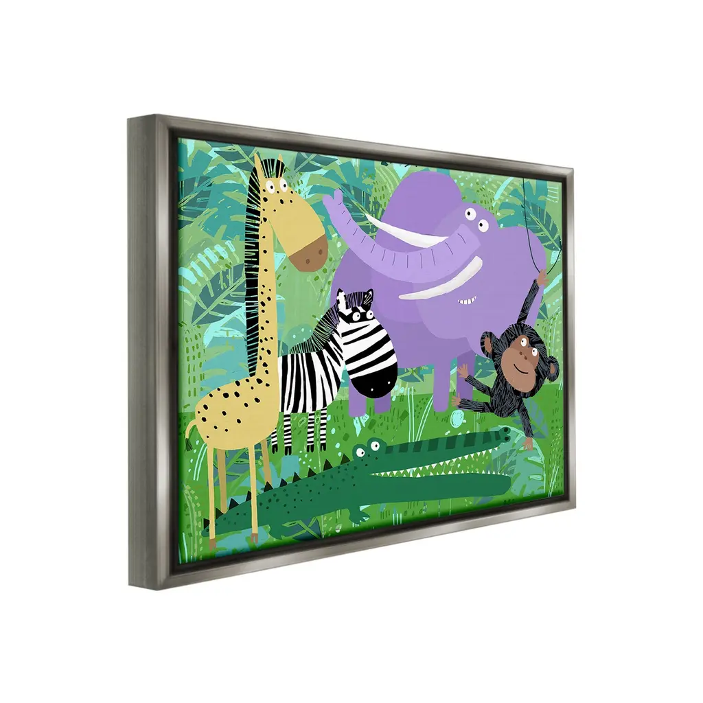 Elevate your home or office to the next level with Stupell Framed Floating Canvas Wall Art. Our premium hand-stretched canvas is mounted securely into a sturdy lightweight frame. The museum-style gap between the wrapped canvas and the box frame gives the illusion of floating artwork. Stupell Wall Art is made in the USA.Features: Dimensions: 21 x 1.7 x 17 Frame, 20 x 1.5 x 16 Canvas ArtFloating Frame Canvas Products are available in sizes 21"x17" and 31"x25". All Floating Frame Canvas Products have a 1.7" Depth.Wall Art is Ready to Hang with Hardware Free Hanging. No Installation required. For Easy Set Up Lean or Layer Artwork on Shelf or Against Wall. Artwork is Permently Fixed into the Frame.Our elevated 1.7" Thick Floating Frame is the perfect complement to our canvas style Wall Art. We use only the highest quality inks in house with industry leading printing solutions. Canvas is hand stretched over a durable wood foundation and then mounted securly into a Modern Box Frame. Made in the USA.Artwork Relates To: Plant, Vegetation, Animal, Mammal, Wildlife, Zebra, Jungle, Nature, Monkey, Giraffe, Elephant, CrocodileDesign by Carla Daly