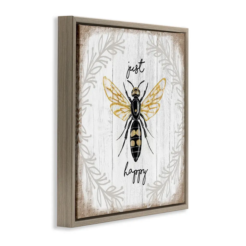 Elevate your home or office to the next level with Stupell Framed Floating Canvas Wall Art. Our premium hand-stretched canvas is mounted securely into a sturdy lightweight frame. The museum-style gap between the wrapped canvas and the box frame gives the illusion of floating artwork. Stupell Wall Art is made in the USA.Features: Dimensions: 18 x 1.7 x 18 Frame, 17 x 1.5 x 17 Canvas ArtFloating Frame Canvas Products are available in sizes 18"x18" and 25"x25". All Floating Frame Canvas Products have a 1.7" Depth.Wall Art is Ready to Hang with Hardware Free Hanging. No Installation required. For Easy Set Up Lean or Layer Artwork on Shelf or Against Wall. Artwork is Permently Fixed into the Frame.Our elevated 1.7" Thick Floating Frame is the perfect complement to our canvas style Wall Art. We use only the highest quality inks in house with industry leading printing solutions. Canvas is hand stretched over a durable wood foundation and then mounted securly into a Modern Box Frame. Made in the USA.Artwork Relates To: Country, Rustic, Insect, Bee, PhraseDesign by Elizabeth Tyndall