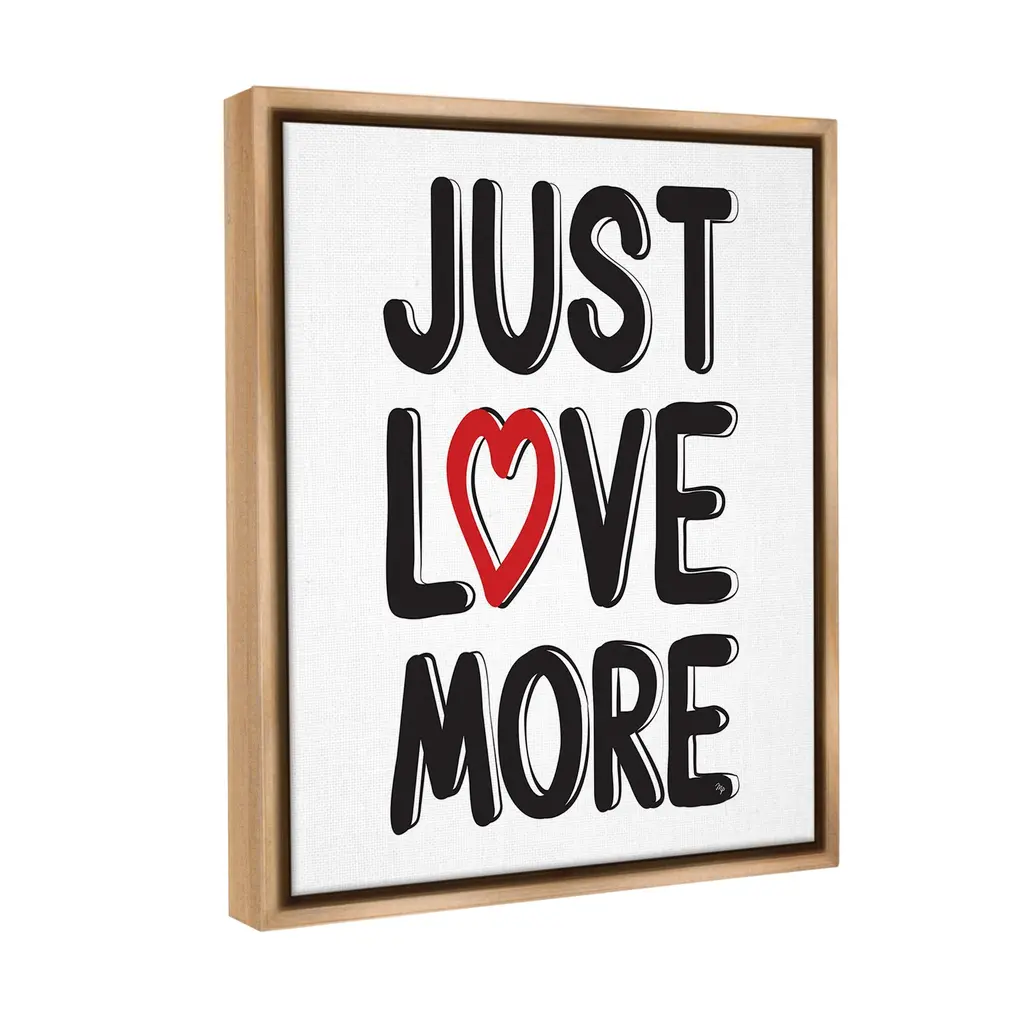 Elevate your home or office to the next level with Stupell Framed Floating Canvas Wall Art. Our premium hand-stretched canvas is mounted securely into a sturdy lightweight frame. The museum-style gap between the wrapped canvas and the box frame gives the illusion of floating artwork. Stupell Wall Art is made in the USA.Features: Dimensions: 17 x 1.7 x 21 Frame, 16 x 1.5 x 20 Canvas ArtFloating Frame Canvas Products are available in sizes 17"x21" and 25"x31". All Floating Frame Canvas Products have a 1.7" Depth.Wall Art is Ready to Hang with Hardware Free Hanging. No Installation required. For Easy Set Up Lean or Layer Artwork on Shelf or Against Wall. Artwork is Permently Fixed into the Frame.Our elevated 1.7" Thick Floating Frame is the perfect complement to our canvas style Wall Art. We use only the highest quality inks in house with industry leading printing solutions. Canvas is hand stretched over a durable wood foundation and then mounted securly into a Modern Box Frame. Made in the USA.Artwork Relates To: Phrase, Heart, Love, Bold, Inspirational, Just Love MoreDesign by Martina Pavlova