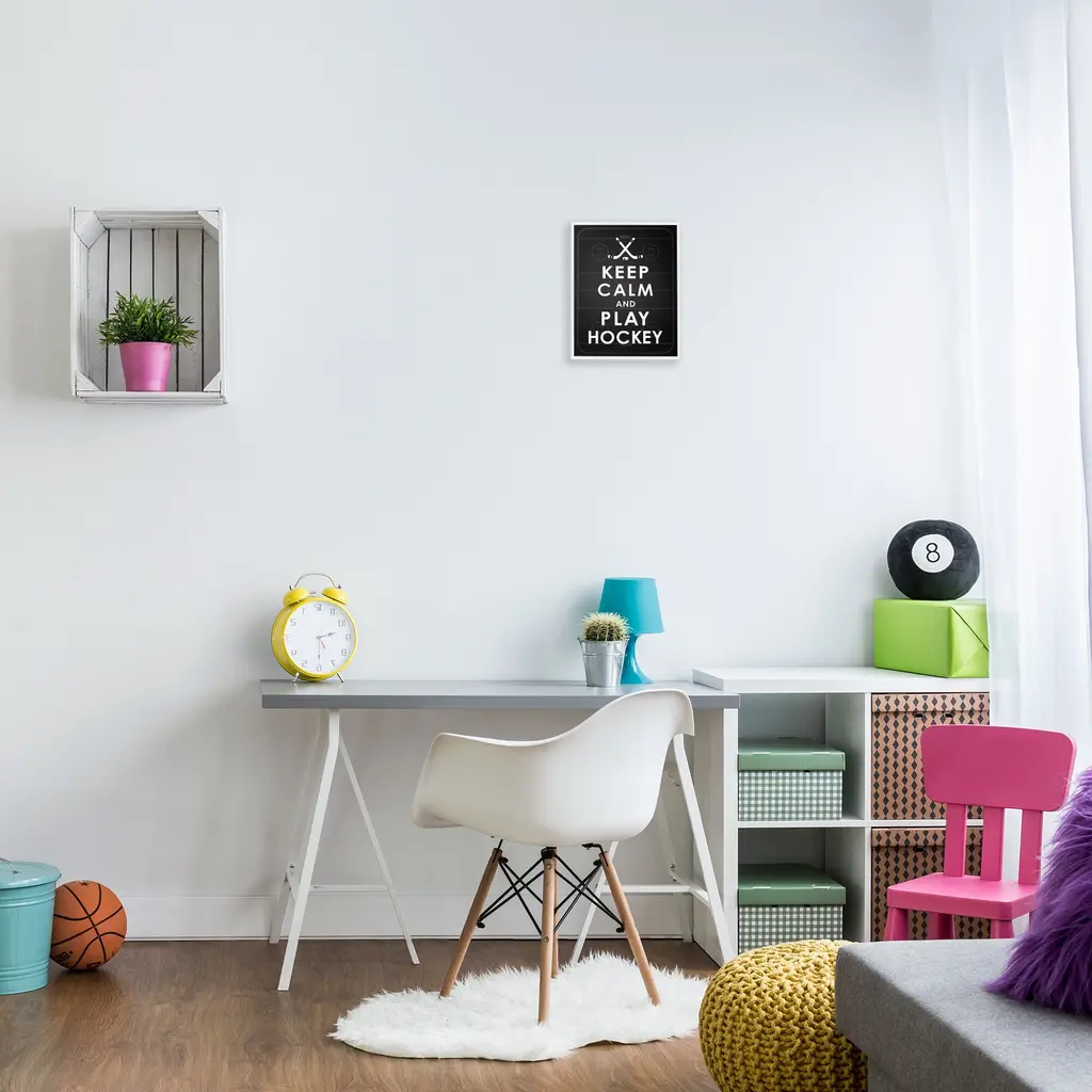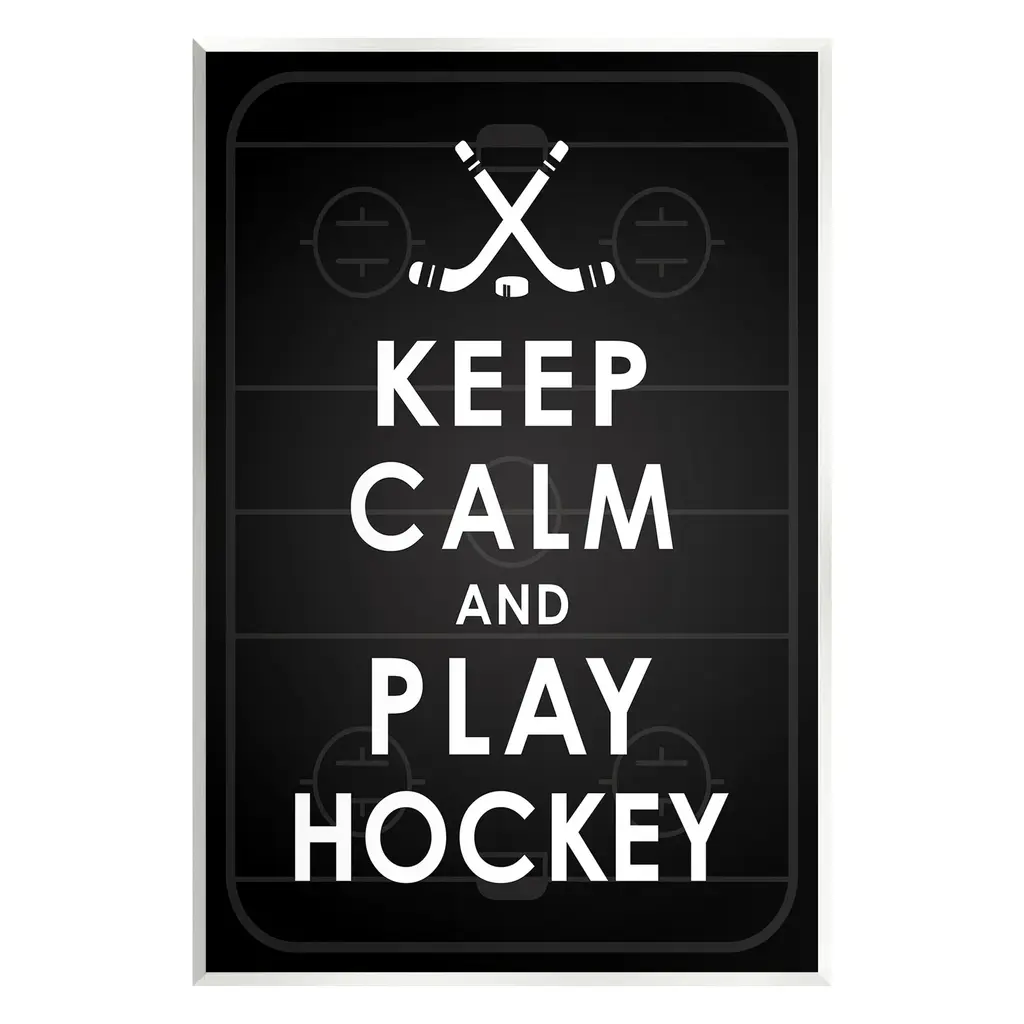 Add dimension to any room with our textured Framed Giclee Artwork. Our framed artwork is securely mounted into a 1.5-inch thick wood grain frame and ready to hang. Frames are available in three alluring styles: black, gray farmhouse and white. In addition, you should check out our oversized options if you want a statement piece. Stupell Wall Art is made in the USA.Features: Dimensions: 11 x 1.5 x 14 FramedFramed Giclee Products are available in the sizes 11"x14", 16"x20" or 24"x30". All Framed Giclee Products have a 1.5" Depth. Wall Art is Ready to Hang with Hardware Free Hanging. No installation required. For Easy Set Up Lean or Layer Artwork on Shelf or Against Wall.Our giclée prints are carefully mounted on a durable MDF backing, and then perfectly finished in a 1.5 inch thick woodgrain frame. Mounted frame colors include black, gray farmhouse and white. Made In USA.Artwork Relates To: Hockey, Ice Hockey, Rink, Skating, Sport, Abstract, Vintage, Pattern, Hockey Stick, Puck, Keep Calm and Play HockeyDesign by Jace Grey