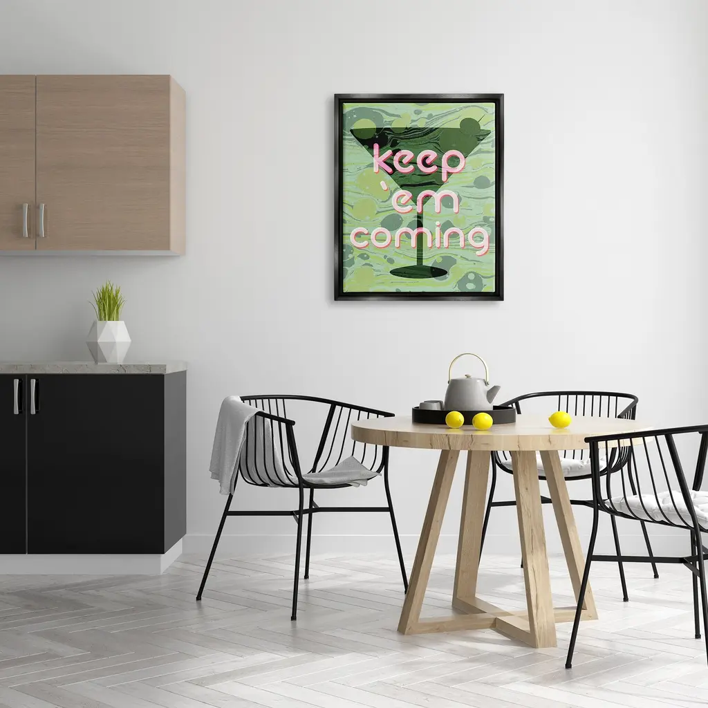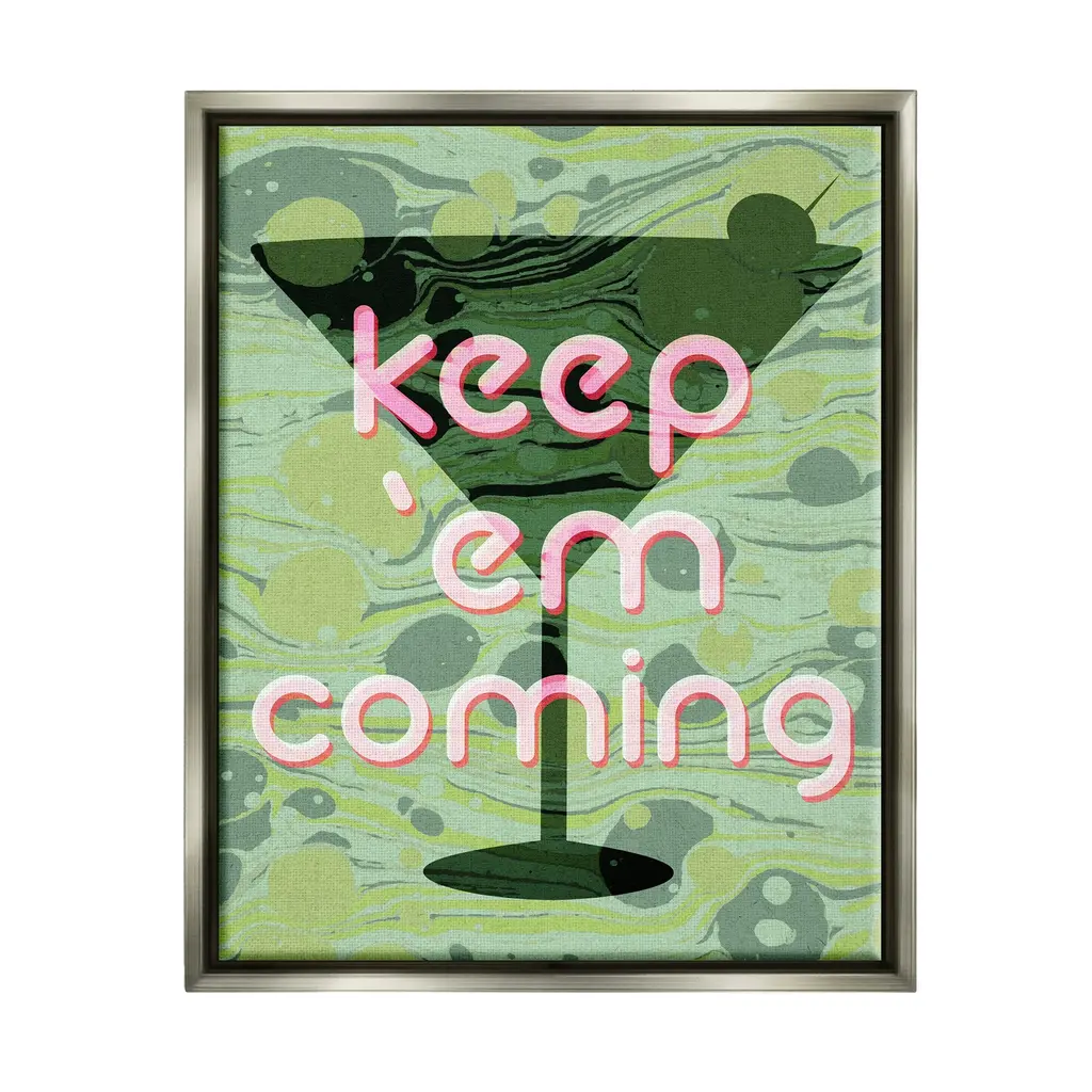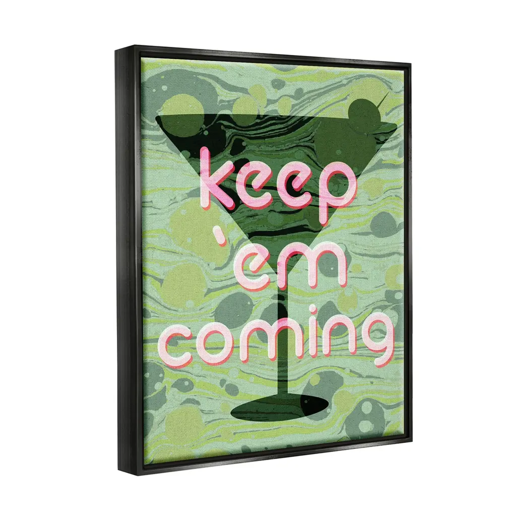 Stupell Keep 'Em Coming Green Martini Framed Floater Canvas Wall Art By Lil' Rue - 24 X 30 - Black