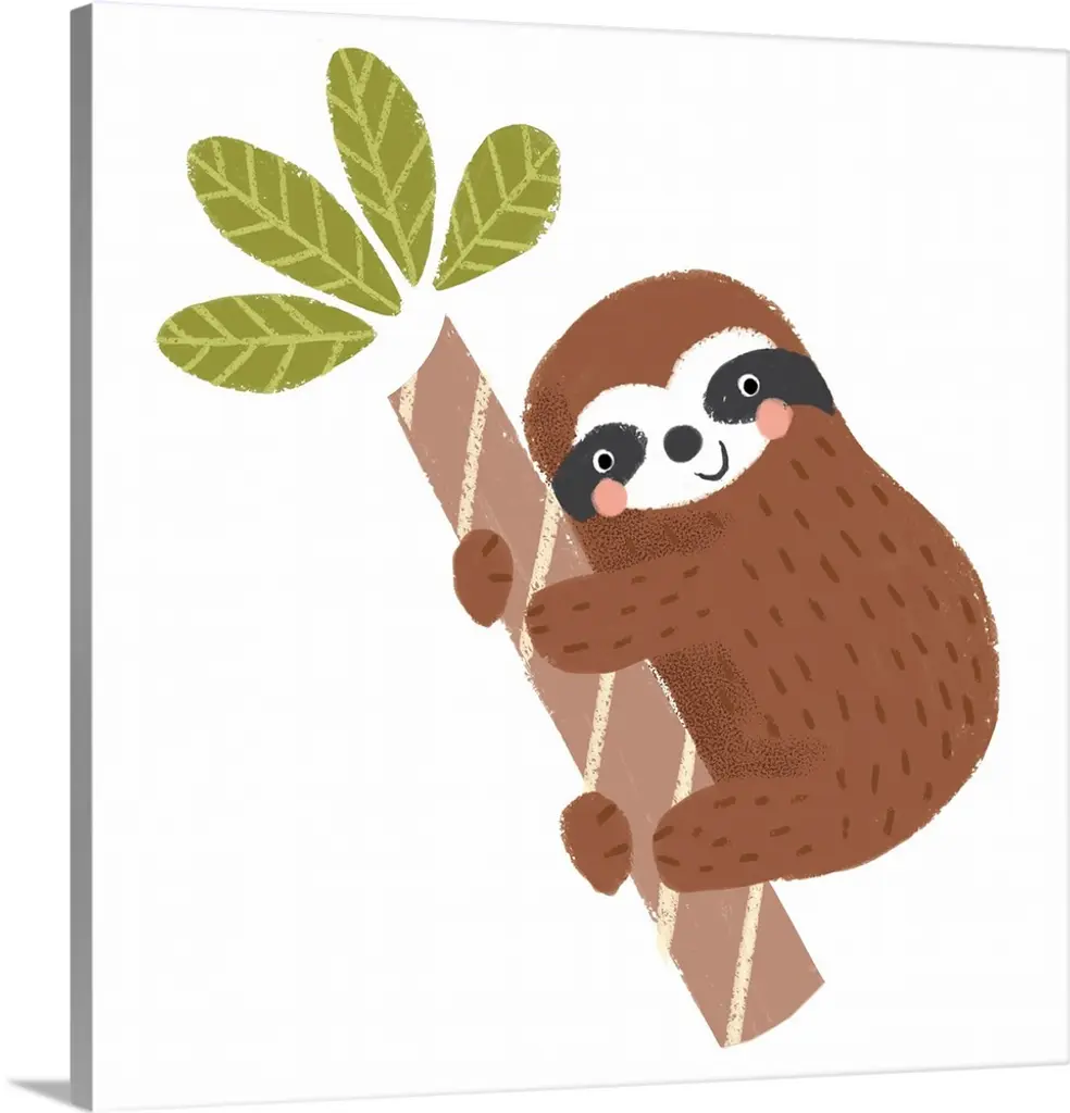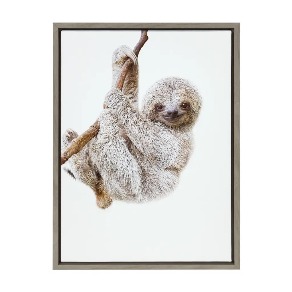 Stupell Keep Smiling Hanging Sloth From Branch Kid's Cartoon Canvas Wall Art - Grey - 40 X 30