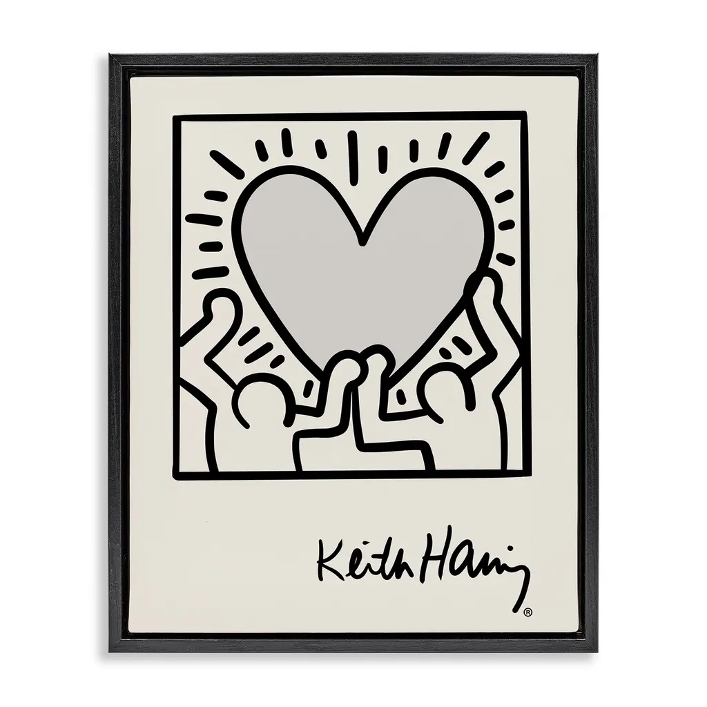 Stupell Keith Haring People Inside Heart Pattern Text Framed Wall Art - Black - 24 X 24 - Black
