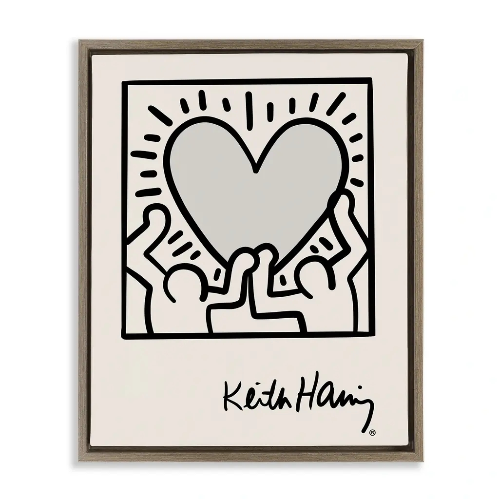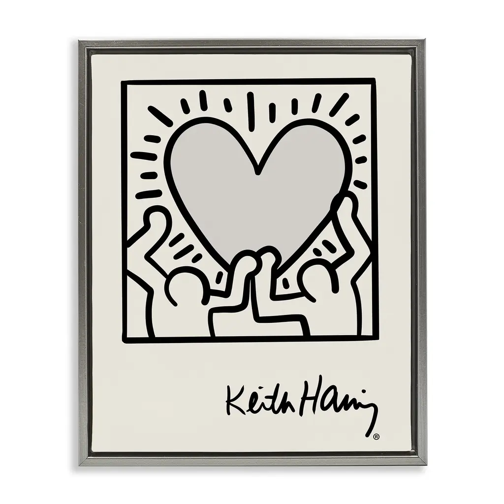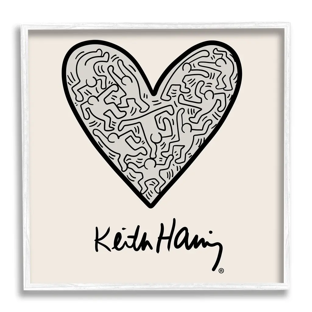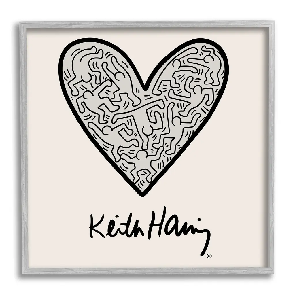 Stupell Keith Haring People Inside Heart Pattern Text Framed Wall Art - Black - 24 X 24 - Grey