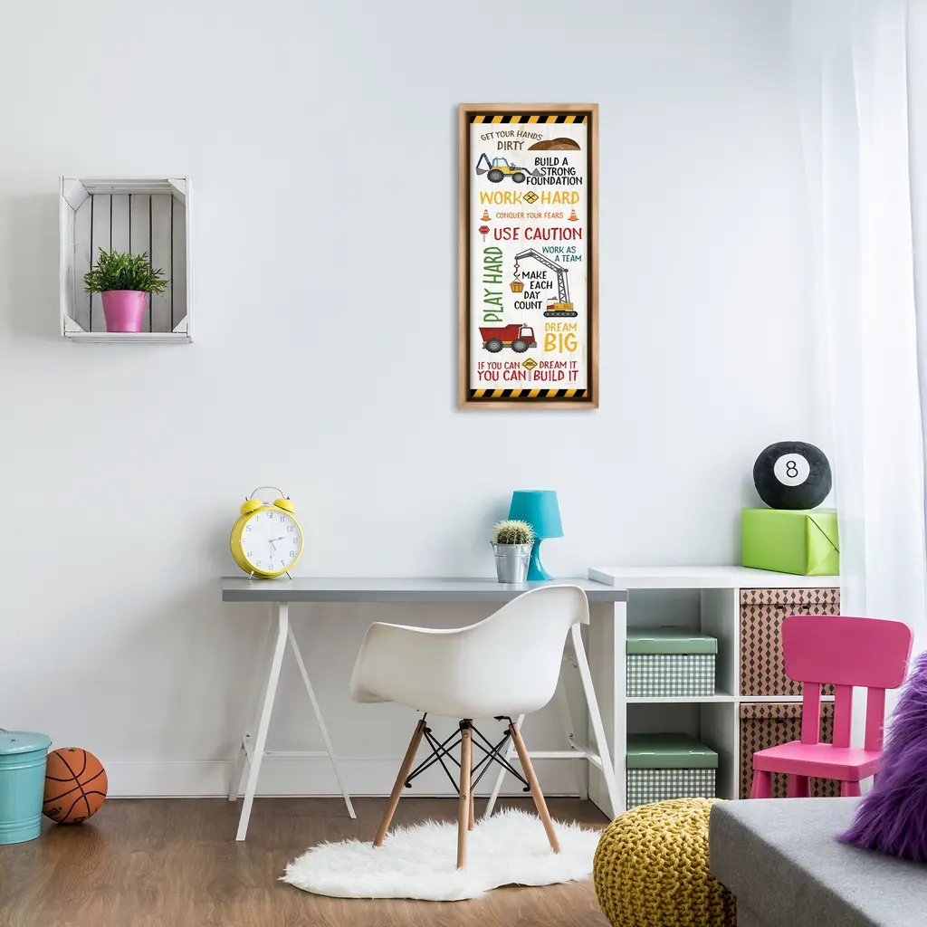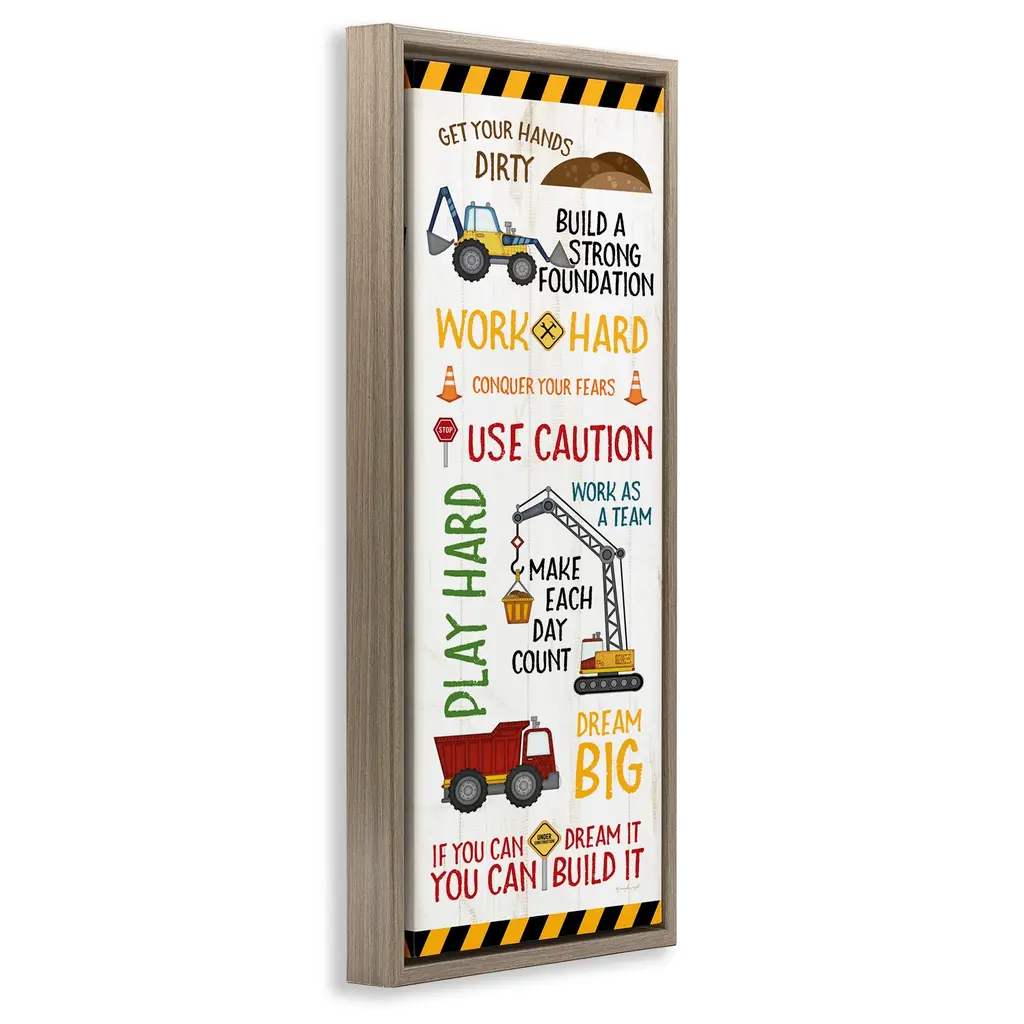 Elevate your home or office to the next level with Stupell Framed Floating Canvas Wall Art. Our premium hand-stretched canvas is mounted securely into a sturdy lightweight frame. The museum-style gap between the wrapped canvas and the box frame gives the illusion of floating artwork. Stupell Wall Art is made in the USA.Features: Dimensions: 11 x 1.7 x 25 Frame, 10 x 1.5 x 24 Canvas ArtFloating Frame Canvas Products are available in sizes 11"x25" and 14"x31". All Floating Frame Canvas Products have a 1.7" Depth.Wall Art is Ready to Hang with Hardware Free Hanging. No Installation required. For Easy Set Up Lean or Layer Artwork on Shelf or Against Wall. Artwork is Permently Fixed into the Frame.Our elevated 1.7" Thick Floating Frame is the perfect complement to our canvas style Wall Art. We use only the highest quality inks in house with industry leading printing solutions. Canvas is hand stretched over a durable wood foundation and then mounted securly into a Modern Box Frame. Made in the USA.Artwork Relates To: Kid's, Construction, Vehicle, Phrase, Truck, Inspirational, MotivationalDesign by Jennifer Pugh
