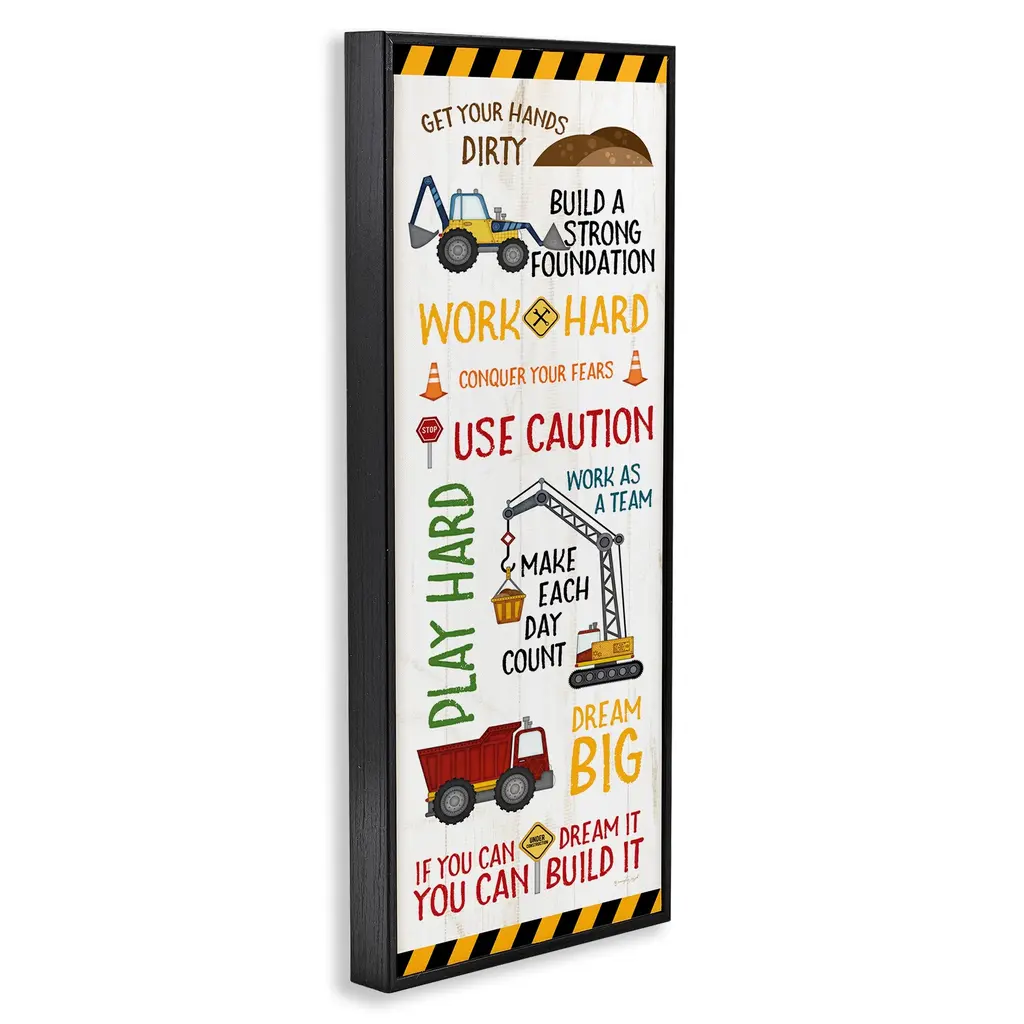 Add dimension to any room with our textured Framed Giclee Artwork. Our framed artwork is securely mounted into a 1.5-inch thick wood grain frame and ready to hang. Frames are available in three alluring styles: black, gray farmhouse and white. In addition, you should check out our oversized options if you want a statement piece. Stupell Wall Art is made in the USA.Features: Dimensions: 10 x 1.5 x 24 FramedFramed Giclee Product Sizes include 10"x24" and 13"x30". All Framed Giclee products have a 1.5" Depth.Wall Art is Ready to Hang with Hardware Free Hanging. No installation required. For Easy Set Up Lean or Layer Artwork on Shelf or Against Wall.Our giclée prints are carefully mounted on a durable MDF backing, and then perfectly finished in a 1.5 inch thick woodgrain frame. Mounted frame colors include black, gray farmhouse and white. Made In USA.Artwork Relates To: Kid's, Construction, Vehicle, Phrase, Truck, Inspirational, MotivationalDesign by Jennifer Pugh