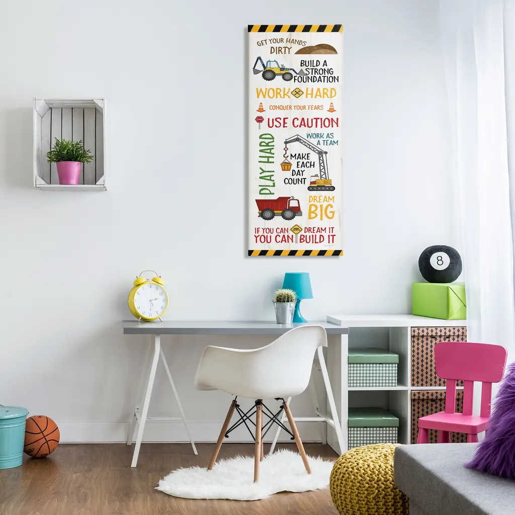 Stupell Kids' Construction Zone Vehicles Motivational Phrases Canvas Wall Art - 20 X 48