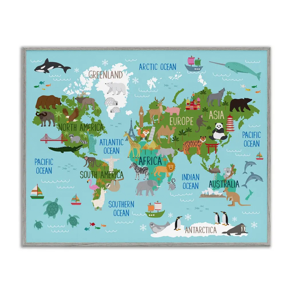 Elevate your home or office to the next level with Stupell Framed Floating Canvas Wall Art. Our premium hand-stretched canvas is mounted securely into a sturdy lightweight frame. The museum-style gap between the wrapped canvas and the box frame gives the illusion of floating artwork. Stupell Wall Art is made in the USA.Features: Dimensions: 21 x 1.7 x 17 Frame, 20 x 1.5 x 16 Canvas ArtFloating Frame Canvas Products are available in sizes 21"x17" and 31"x25". All Floating Frame Canvas Products have a 1.7" Depth.Wall Art is Ready to Hang with Hardware Free Hanging. No Installation required. For Easy Set Up Lean or Layer Artwork on Shelf or Against Wall. Artwork is Permently Fixed into the Frame.Our elevated 1.7" Thick Floating Frame is the perfect complement to our canvas style Wall Art. We use only the highest quality inks in house with industry leading printing solutions. Canvas is hand stretched over a durable wood foundation and then mounted securly into a Modern Box Frame. Made in the USA.Artwork Relates To: Map, World Map, Travel, Adventure, Animals, EducationalDesign by Lisa Whitebutton