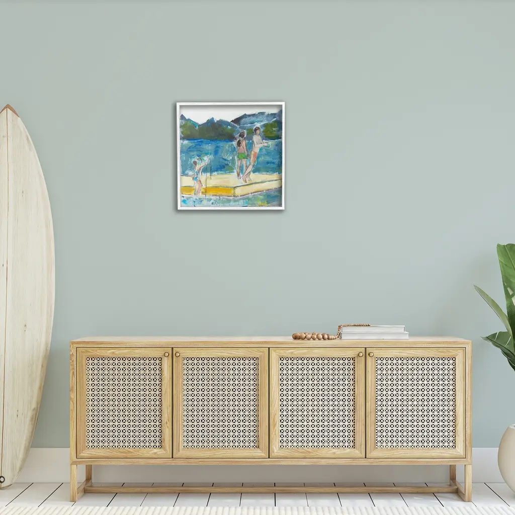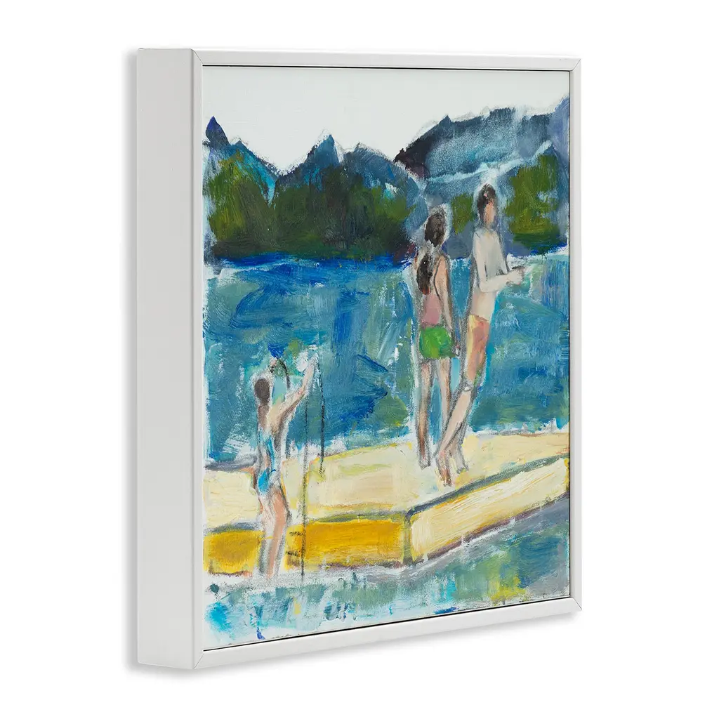 Stupell Kids On Swimming Dock Abstract Contemporary Lake Scene Framed Wall Art - 24 X 24 - White
