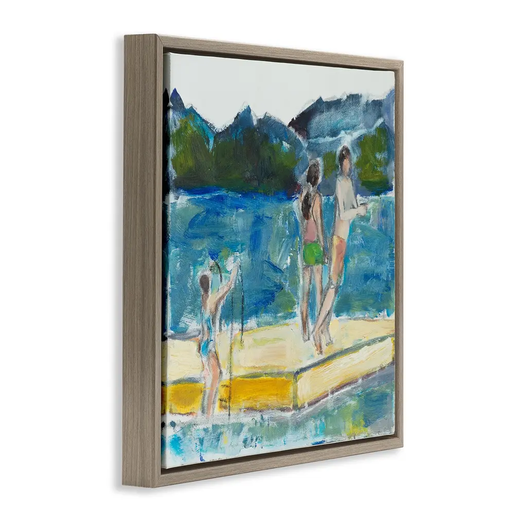 Elevate your home or office to the next level with Stupell Framed Floating Canvas Wall Art. Our premium hand-stretched canvas is mounted securely into a sturdy lightweight frame. The museum-style gap between the wrapped canvas and the box frame gives the illusion of floating artwork. Stupell Wall Art is made in the USA.Features: Dimensions: 18 x 1.7 x 18 Frame, 17 x 1.5 x 17 Canvas ArtFloating Frame Canvas Products are available in sizes 18"x18" and 25"x25". All Floating Frame Canvas Products have a 1.7" Depth.Wall Art is Ready to Hang with Hardware Free Hanging. No Installation required. For Easy Set Up Lean or Layer Artwork on Shelf or Against Wall. Artwork is Permently Fixed into the Frame.Our elevated 1.7" Thick Floating Frame is the perfect complement to our canvas style Wall Art. We use only the highest quality inks in house with industry leading printing solutions. Canvas is hand stretched over a durable wood foundation and then mounted securly into a Modern Box Frame. Made in the USA.Artwork Relates To: Painting, People, Swimming, Beach, Lake, Summer, AbstractDesign by Susanne Marie
