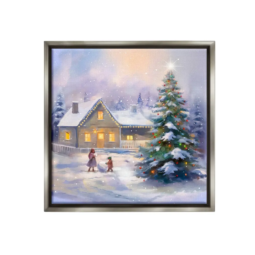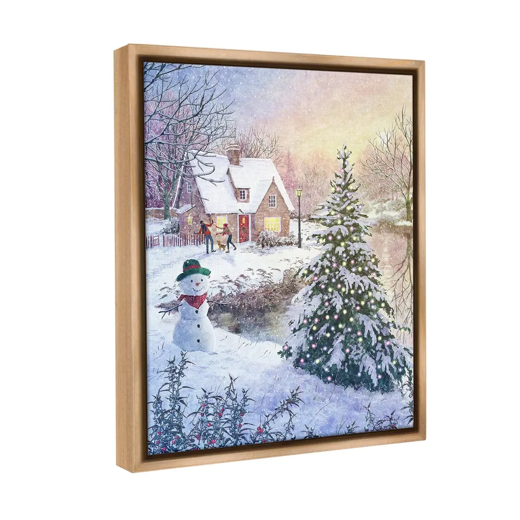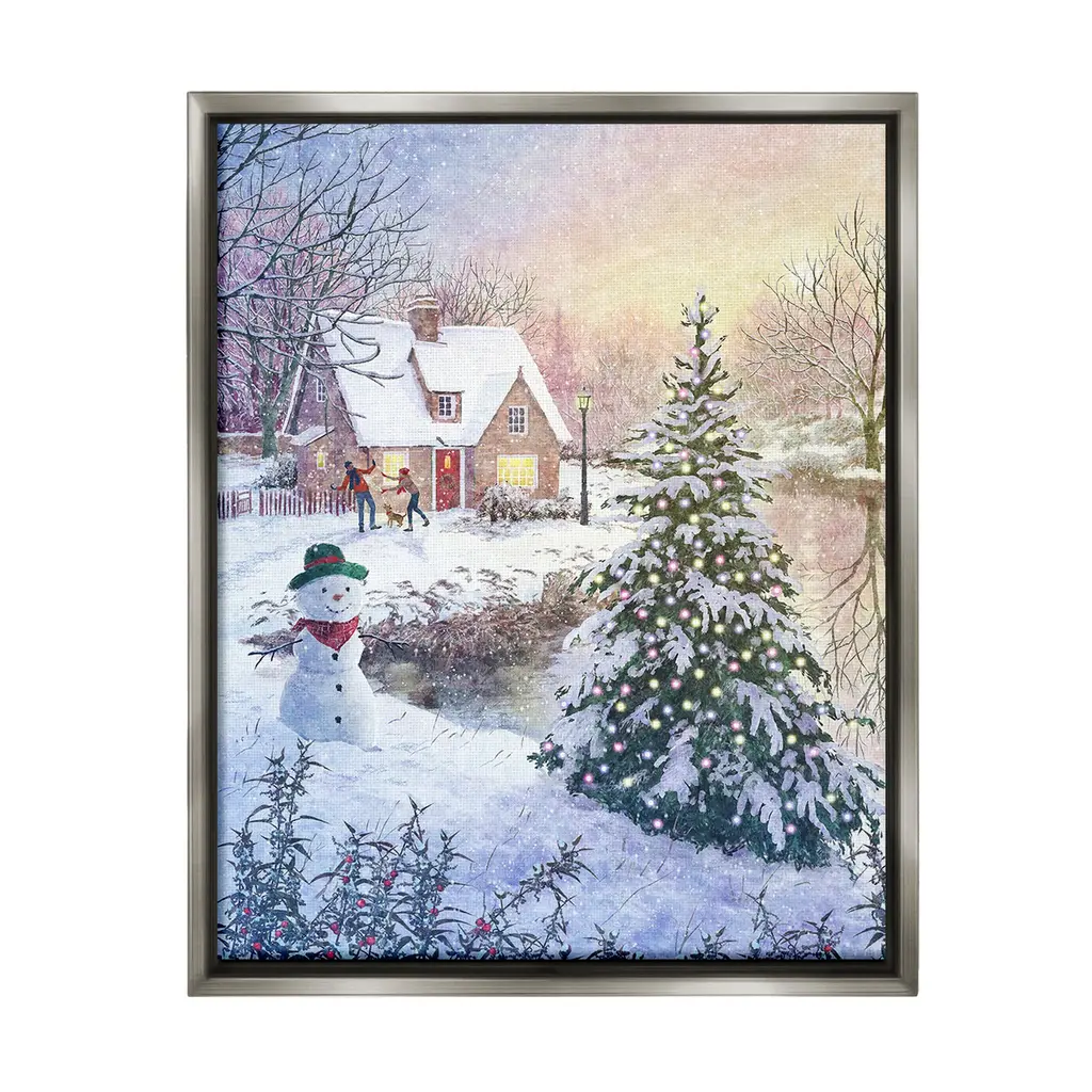 Elevate your home or office to the next level with Stupell Framed Floating Canvas Wall Art. Our premium hand-stretched canvas is mounted securely into a sturdy lightweight frame. The museum-style gap between the wrapped canvas and the box frame gives the illusion of floating artwork. Stupell Wall Art is made in the USA.Features: Dimensions: 17 x 1.7 x 21 Frame, 16 x 1.5 x 20 Canvas ArtFloating Frame Canvas Products are available in sizes 17"x21" and 25"x31". All Floating Frame Canvas Products have a 1.7" Depth.Wall Art is Ready to Hang with Hardware Free Hanging. No Installation required. For Easy Set Up Lean or Layer Artwork on Shelf or Against Wall. Artwork is Permently Fixed into the Frame.Our elevated 1.7" Thick Floating Frame is the perfect complement to our canvas style Wall Art. We use only the highest quality inks in house with industry leading printing solutions. Canvas is hand stretched over a durable wood foundation and then mounted securly into a Modern Box Frame. Made in the USA.Artwork Relates To: Nature, Winter, Snow, Snowman, Christmas, Person, Plant, Tree, House, HolidayDesign by Pip Wilson