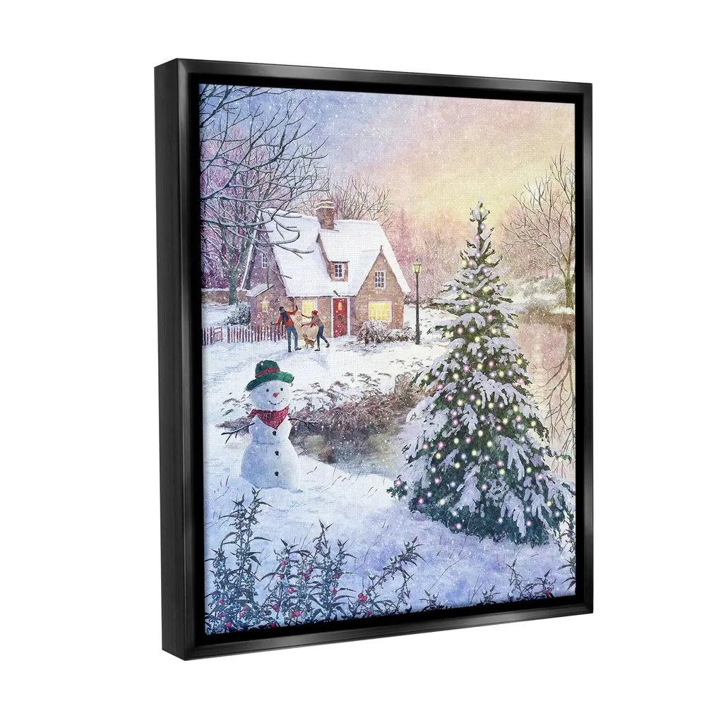 Elevate your home or office to the next level with Stupell Framed Floating Canvas Wall Art. Our premium hand-stretched canvas is mounted securely into a sturdy lightweight frame. The museum-style gap between the wrapped canvas and the box frame gives the illusion of floating artwork. Stupell Wall Art is made in the USA.Features: Dimensions: 17 x 1.7 x 21 Frame, 16 x 1.5 x 20 Canvas ArtFloating Frame Canvas Products are available in sizes 17"x21" and 25"x31". All Floating Frame Canvas Products have a 1.7" Depth.Wall Art is Ready to Hang with Hardware Free Hanging. No Installation required. For Easy Set Up Lean or Layer Artwork on Shelf or Against Wall. Artwork is Permently Fixed into the Frame.Our elevated 1.7" Thick Floating Frame is the perfect complement to our canvas style Wall Art. We use only the highest quality inks in house with industry leading printing solutions. Canvas is hand stretched over a durable wood foundation and then mounted securly into a Modern Box Frame. Made in the USA.Artwork Relates To: Nature, Winter, Snow, Snowman, Christmas, Person, Plant, Tree, House, HolidayDesign by Pip Wilson